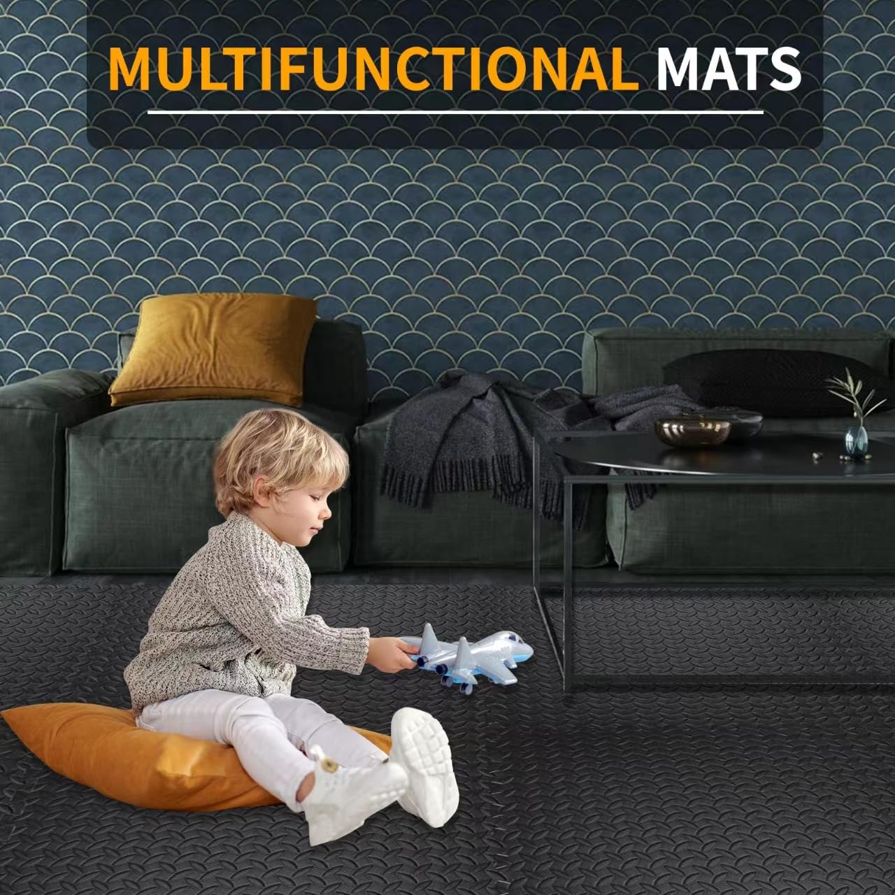 - Durable Gym Mat: Non-skid textured squares and tiles that cover and protect your floor or even carpet while creating a comfortable workout room with exercise accessories or as a play mat for children