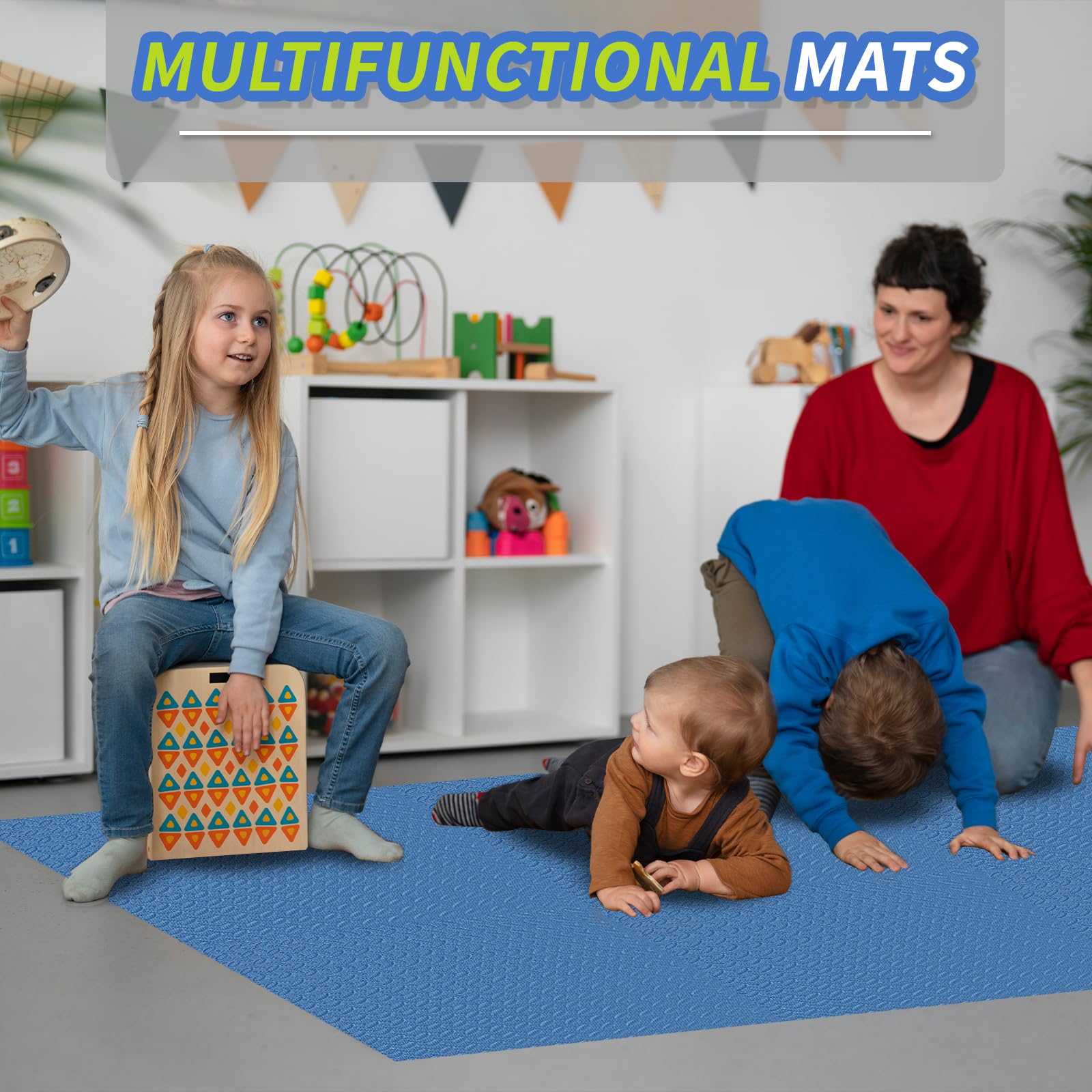 Puzzle Exercise Mat ½ in Thickness, 24'' x 24'' EVA Foam Floor Tiles, 12 Tiles Protective Flooring Mats Floor Interlocking Foam Gym Floor Mats for Home Gym Equipment Covers 48 SQ FT, Blue