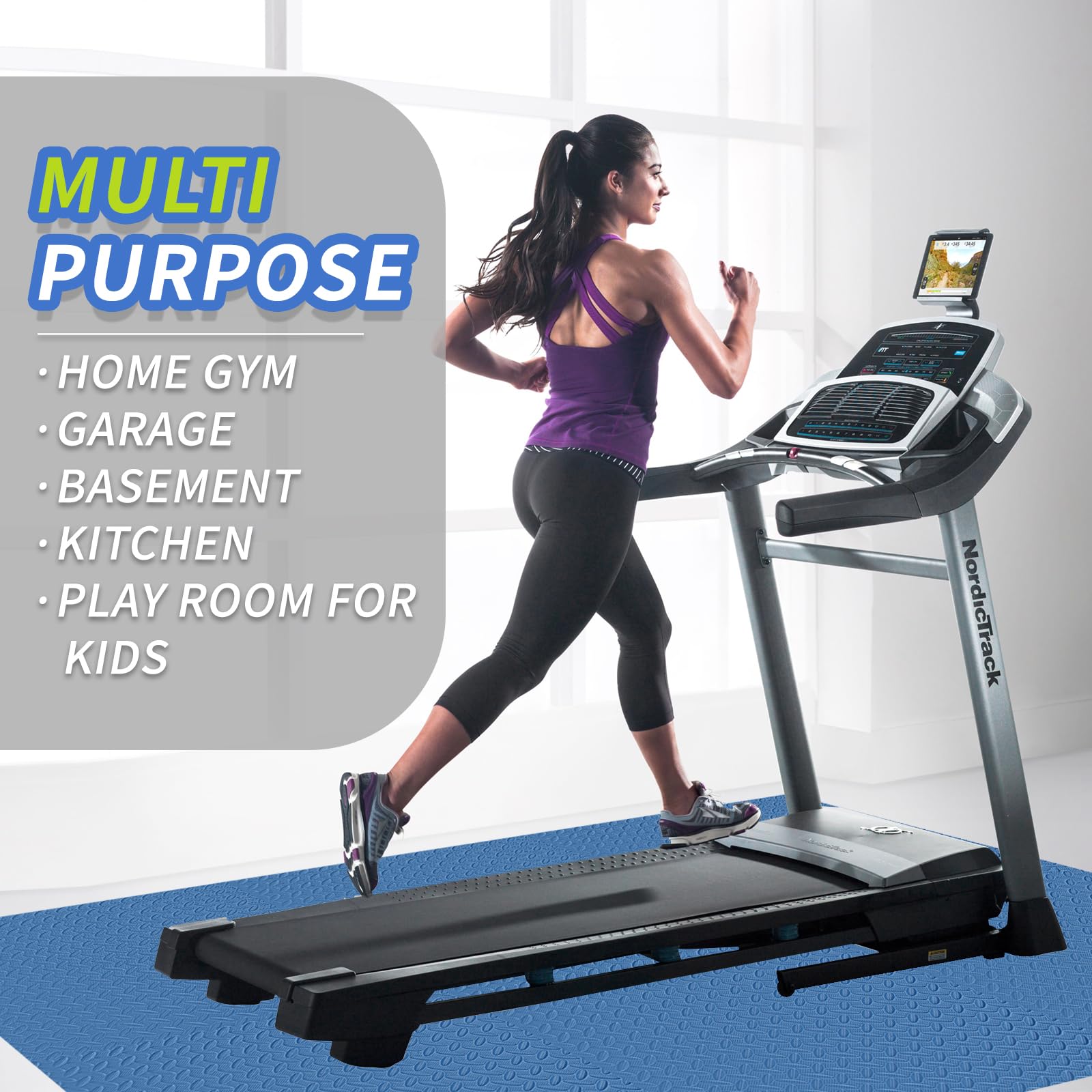- Covers 48 SQ FT - Each tile measures 24 in x 24 in x 1 /2''in - thick from the highest point of the texture; Includes 12 tiles with end borders for a polished look.perfect space for gym equipment or workout on it, and also safe for kids as playground.