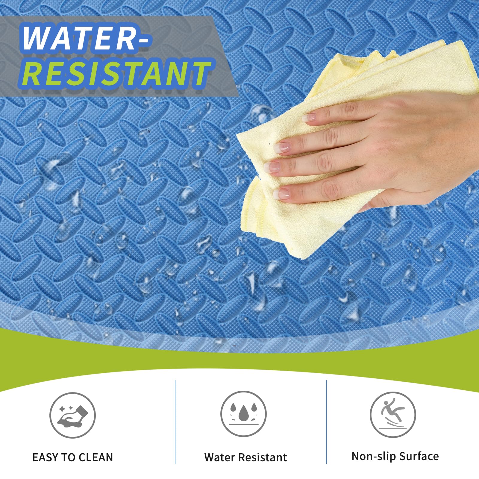 - WATERPROOF & EASY TO CLEAN - Simply wipe the surface of the workout mat with a damp (mild soap) cloth, without disassembling and reassembling. Alternatively, you can also take it apart and immerse it in water for complete cleaning.