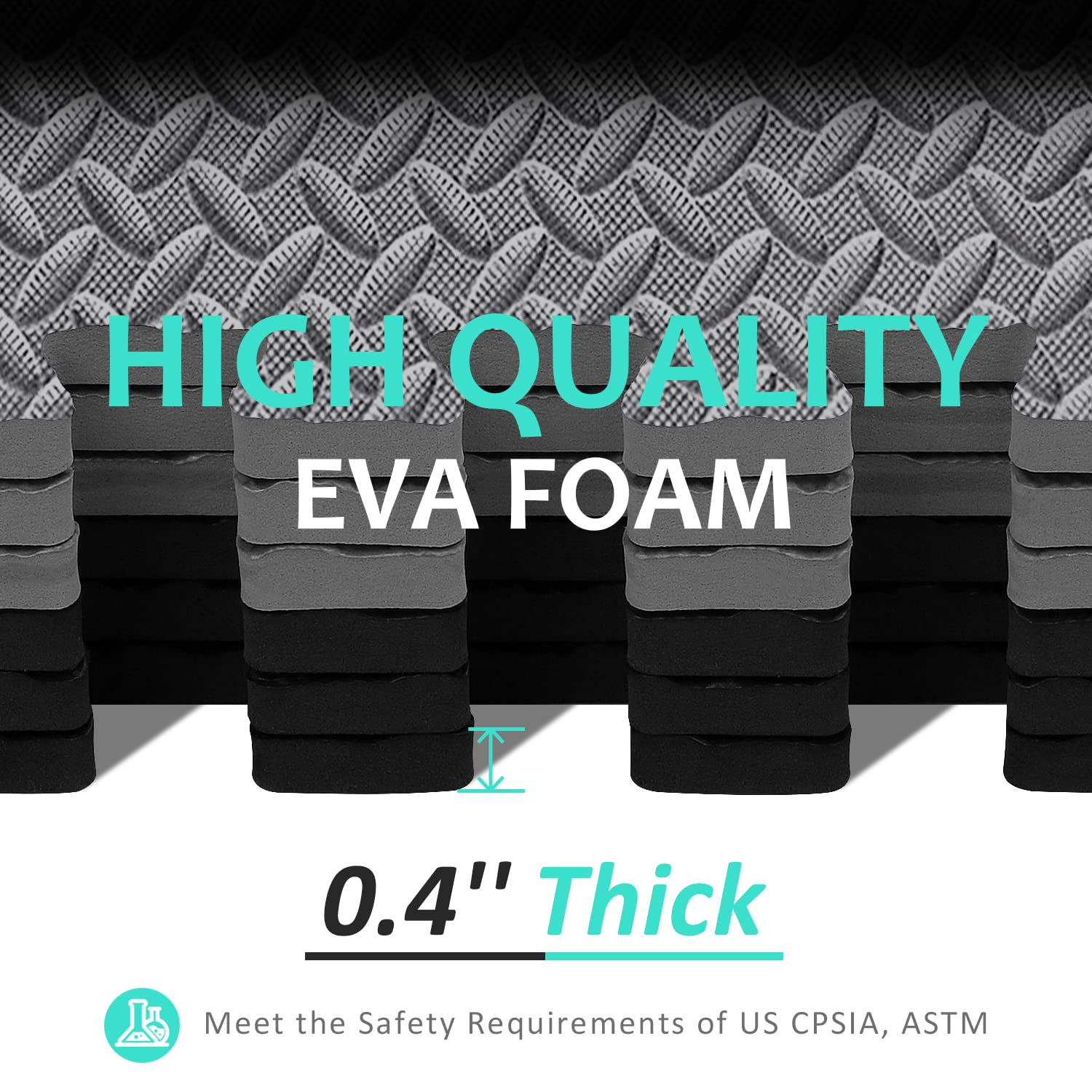 - PROTECTIVE FLOORING - BEAUTYOVO gym flooring mats are made of soft, flexible and impact resistant EVA FOAM. 0.4'' thick padding will provide excellent cushioning for body or equipment, and safeguard your floor from scratches, scuffs and dents. Meets US CPSIA, ASTM and EU EN71-1-2-3 safety requirements.