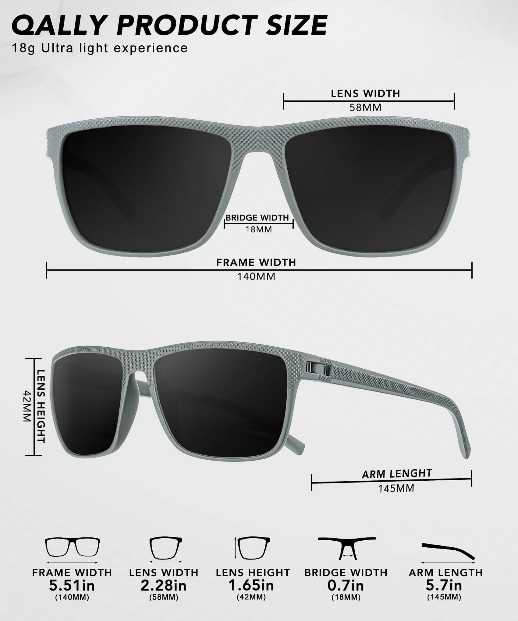 QALLY Polarized Sunglasses Men, Mens Sunglasses Polarized UV protection Lightweight Sun Glasses for Driving Fishing Golf