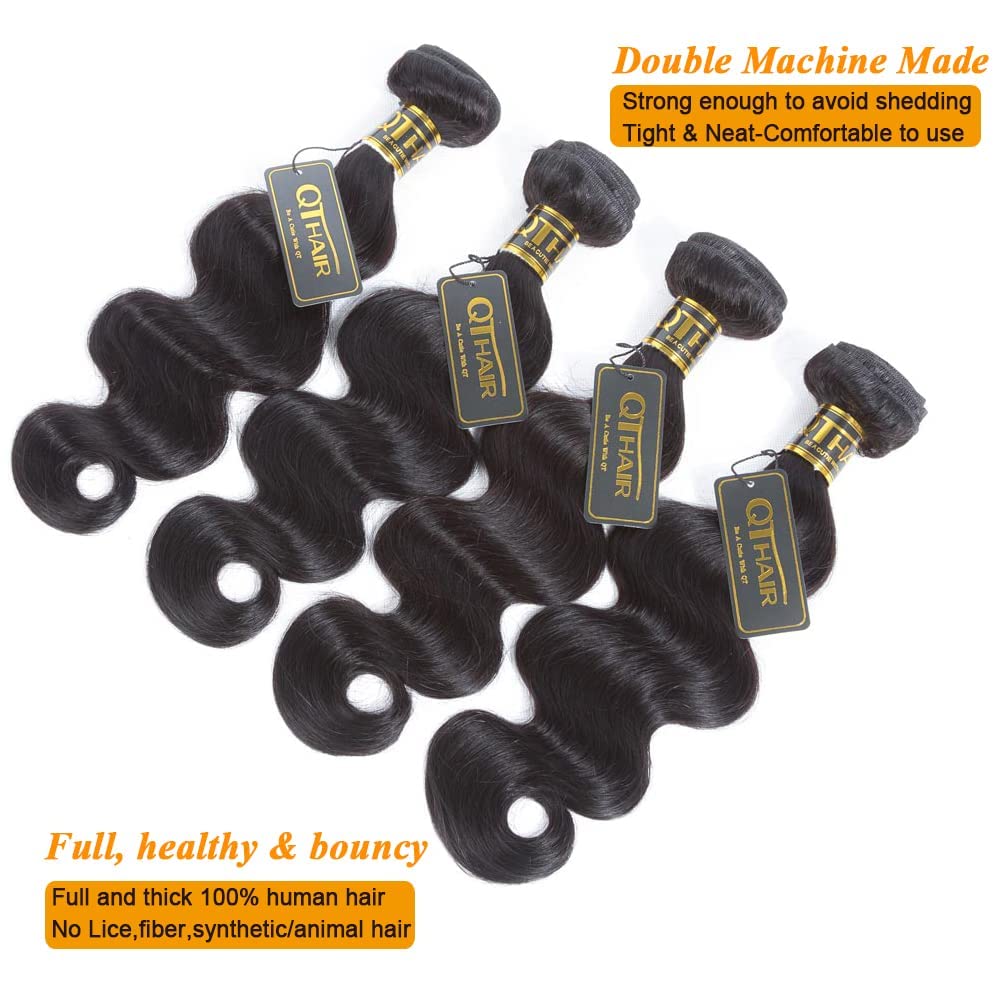 - QTHAIR 16A Grade Human Hair Bundles Material: 100% Unprocessed Brazilian Body Wave Human Hair 4Bundles,Cut from QTHAIR 16A Brazilian Virgin Hair Long Body Wave Bundles Human Hair 32 30 28 26inch Natural Black 100% Unprocessed Brazilian Human Hair Bundles Body Wave Human Hair for Black Womenoung Donors Directly, Smooth&Silky, Clean & Healthy.