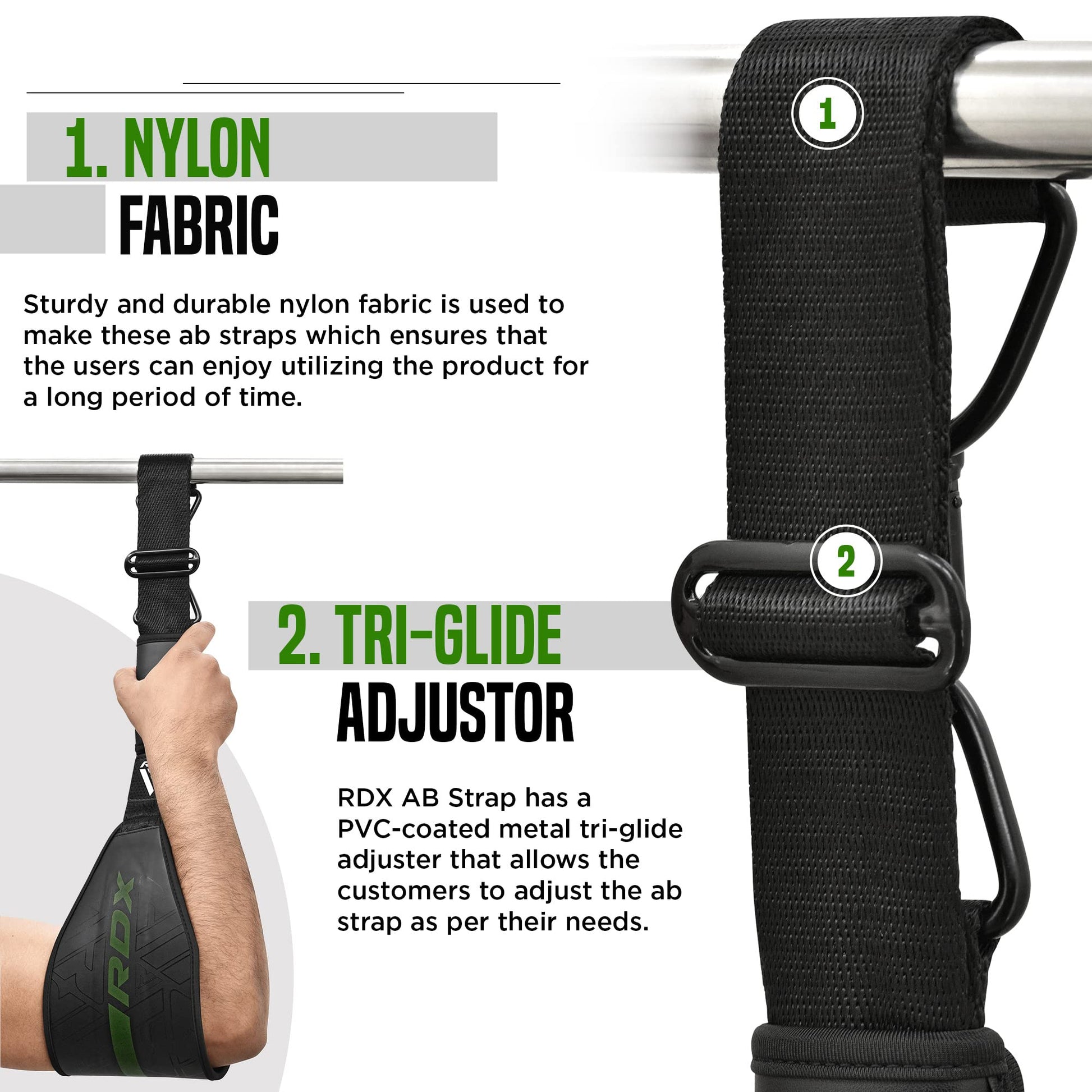 - EXCEPTIONAL CORE TRAINING β Take your core training to the next level with the RDX Ab Sling, engineered for enduring performance. Crafted with premium outer uniform Maya Hide leather, renowned for its toughness and resilience, these ab straps for pull up bar ensure long-lasting durability, allowing you to push your limits without fear of wear and tear. The inner continuous single-stitched strap design strengthens the ab straps, supports intense ab workouts, and prevents ripping or tearing.