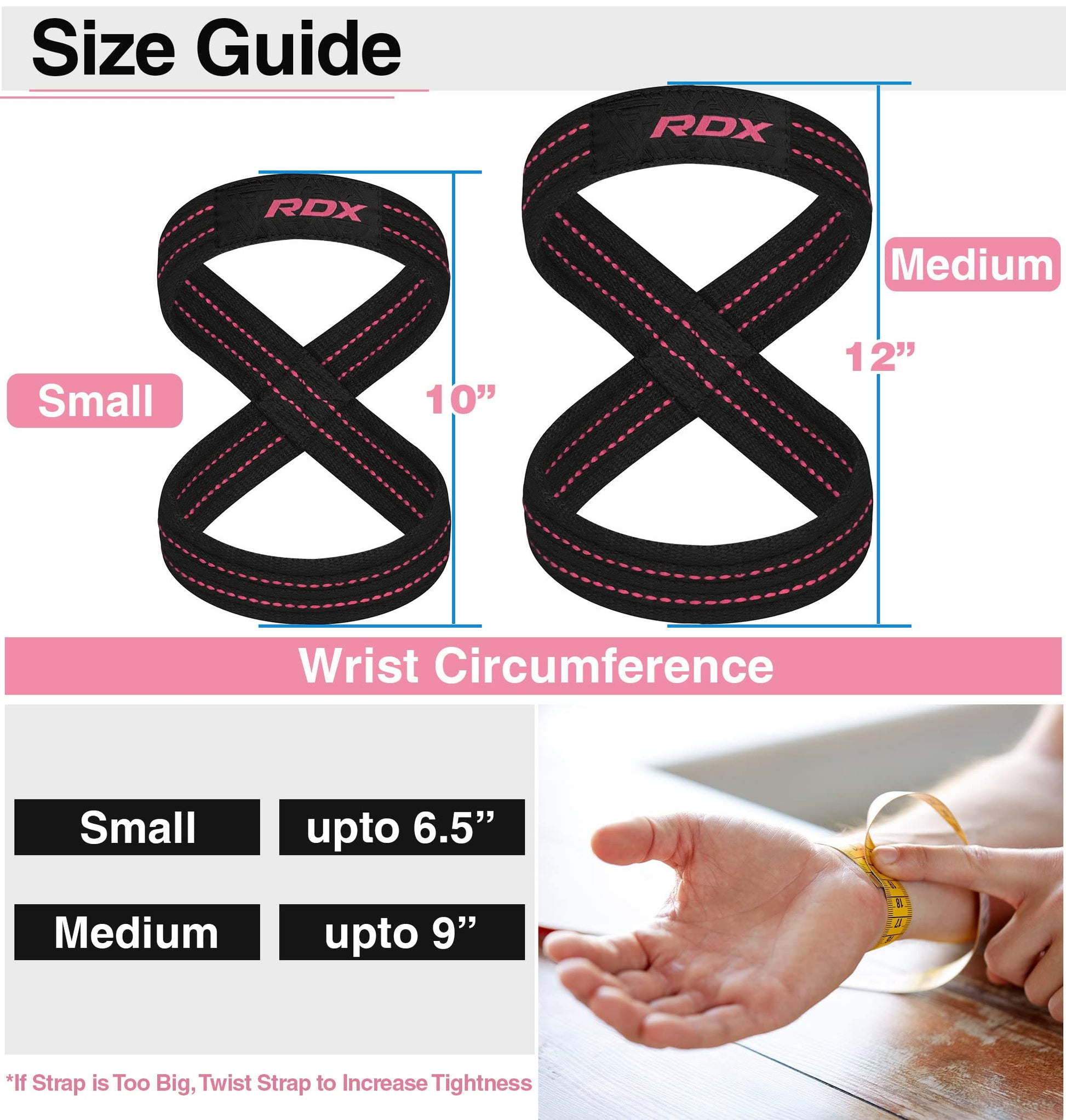 RDX Weight Lifting Straps Figure 8, Anti Slip Strap with Cuffs Wrist Support for Gym Workout Deadlift Powerlifting Bodybuilding Weightlifting, Fitness Strength Training, Hand Bar Grip for Men