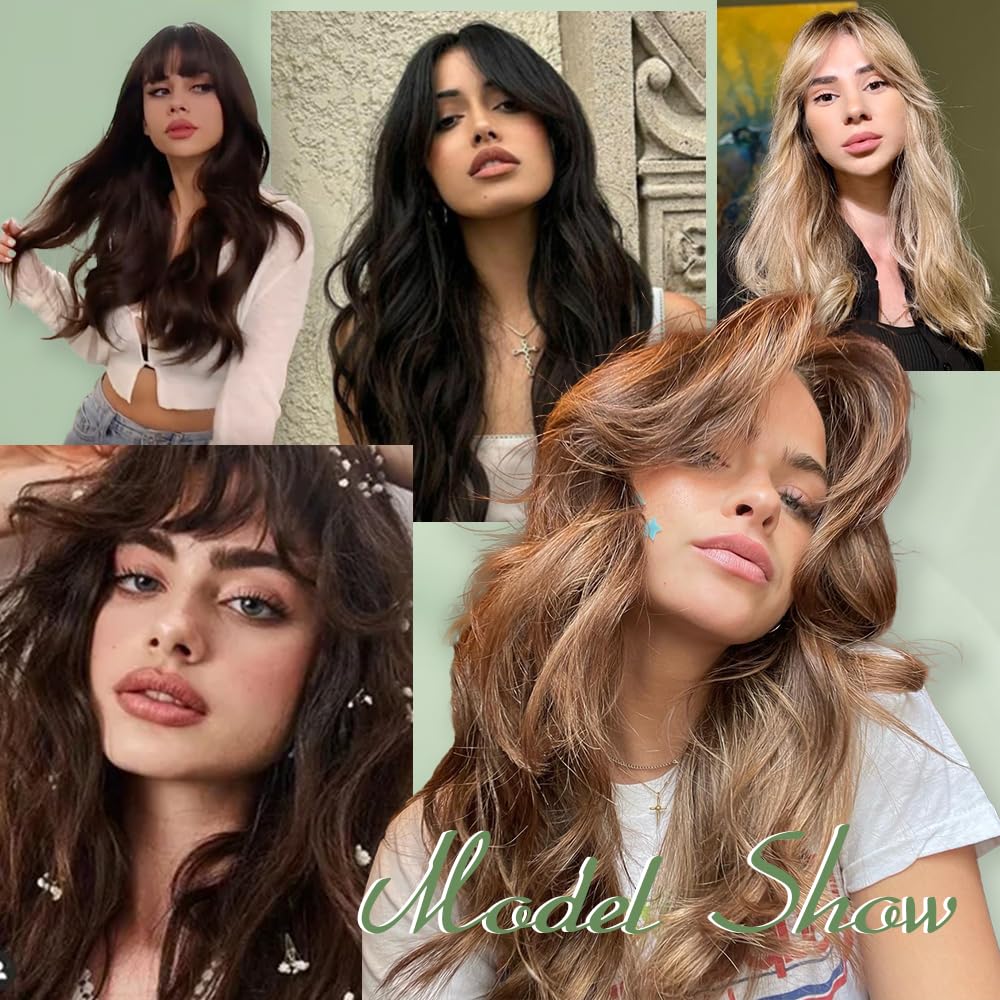 - 💕【Upgraded Materials】Long wig with bangs is made of high temperature resistant fiber, you can do any DIY hair style. Soft and smooth, it looks completely natural like real hair.