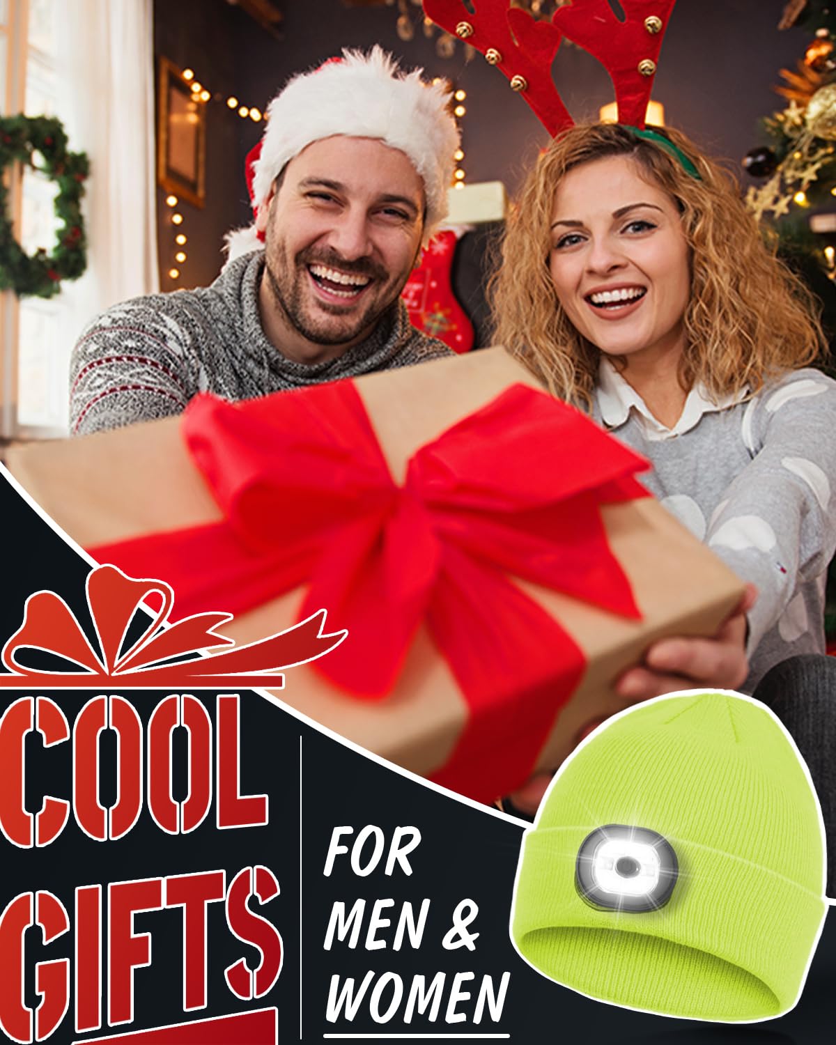 Rechargeable LED Beanie Headlamp - Unisex Winter Knit Cap with Hands Free Flashlight for Fishing, Running, Camping,Lemon
