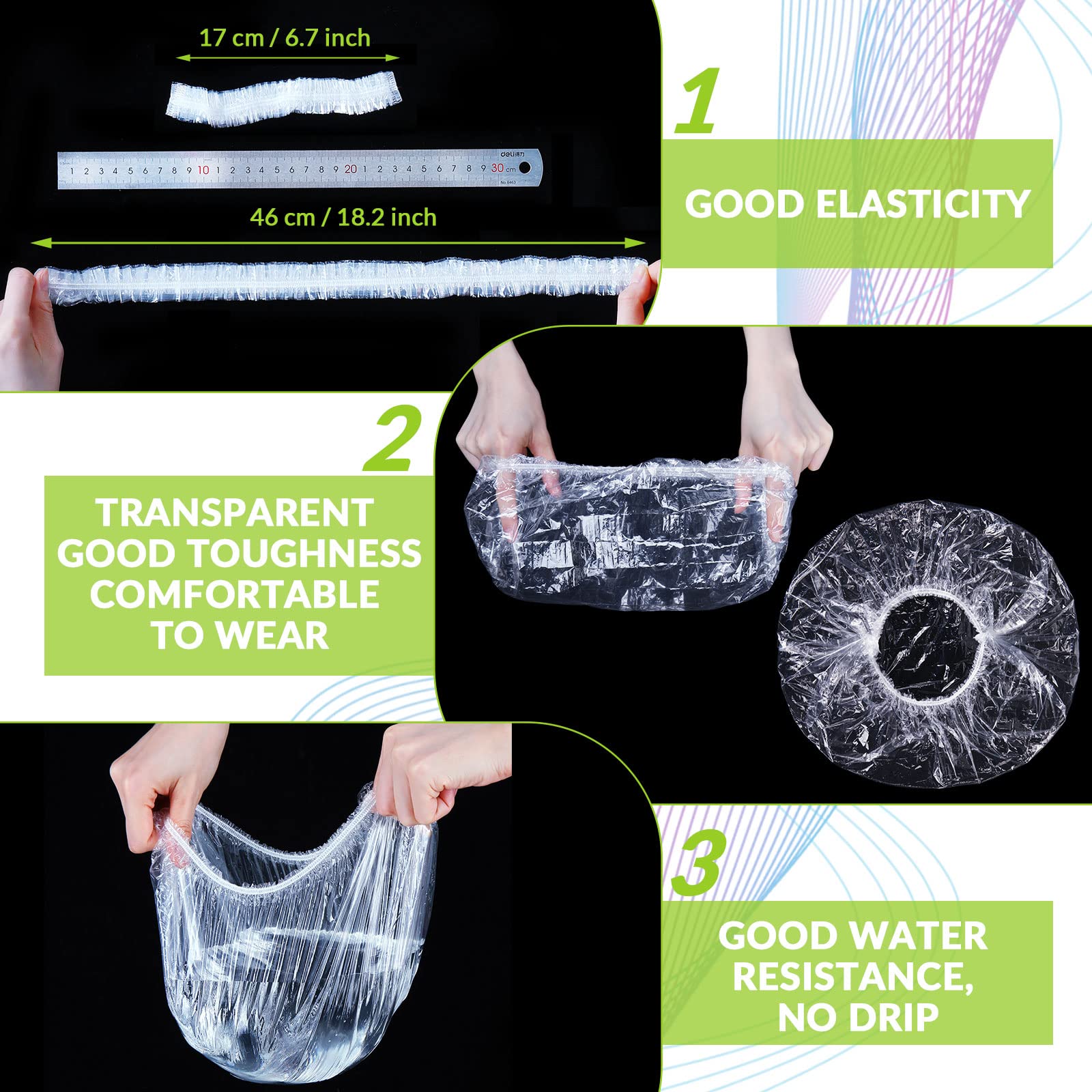 - Wide Application: the plastic caps for hair can not only be applied for shower, hair salon, kitchen, but also they can be applied as shoe covers, cap sleeves and more, bringing convenience for your travel, camping and other outdoor activities