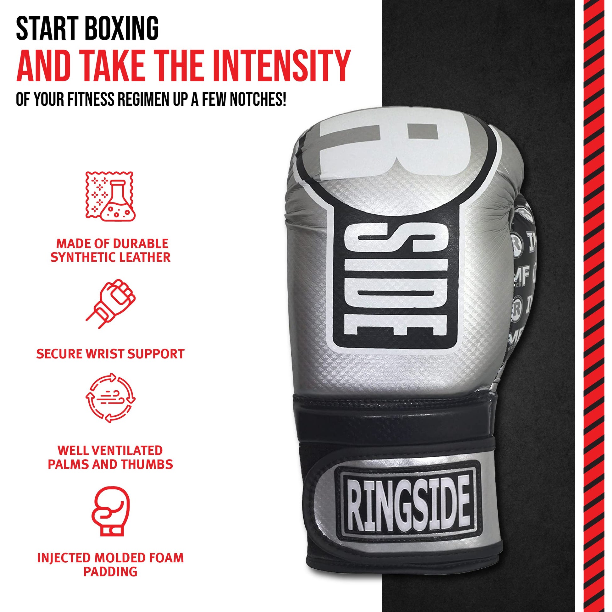 - Boxing Gloves: Fight your way to the top with Ringside’s Apex Boxing Bag Gloves. These durable synthetic leather gloves will help you push your body to the limit every time and allow you to reach your fitness and athletic goals.