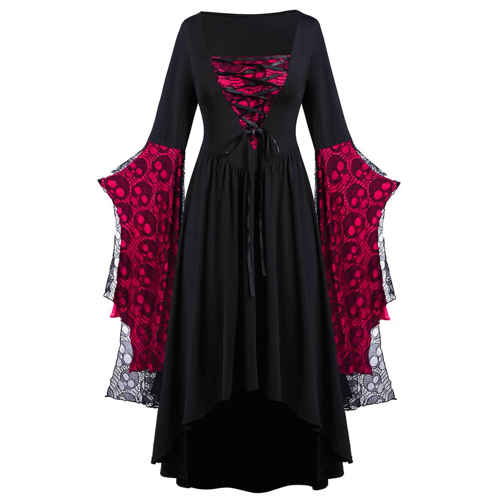 Rkwins Renaissance Dress for Women Gothic Vampire Dress Scary Print Maxi Dress Plus Size Witch Dress Medieval Corset Dress