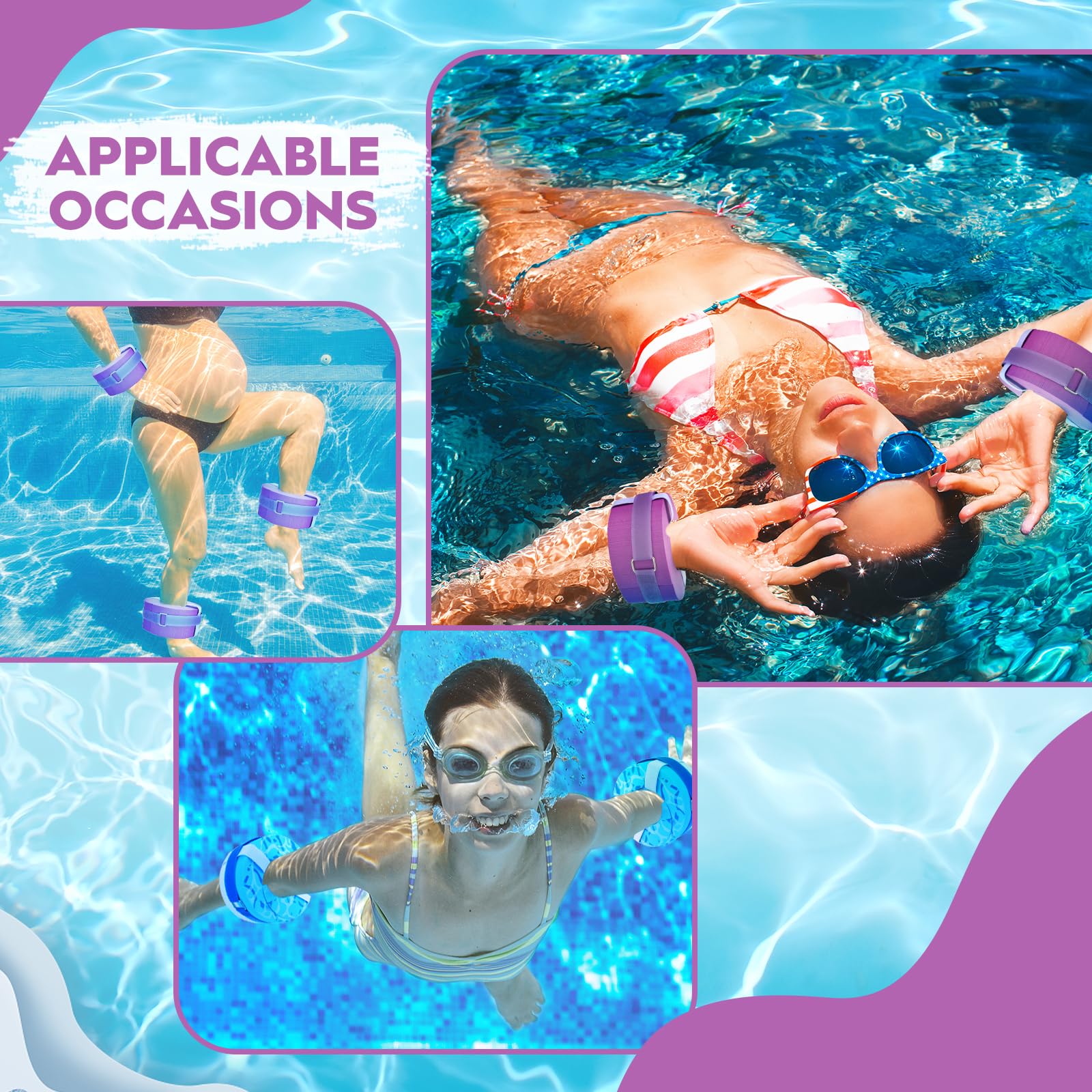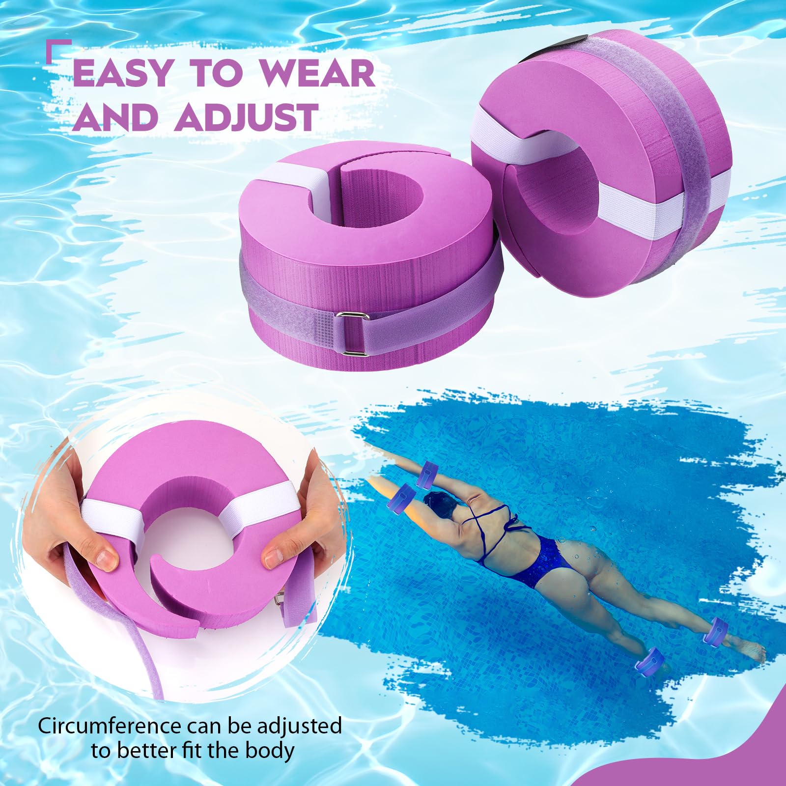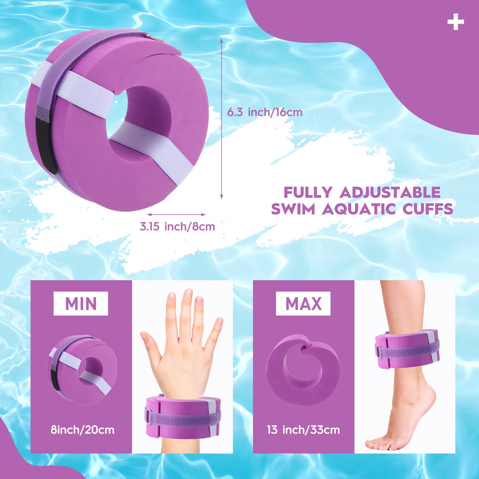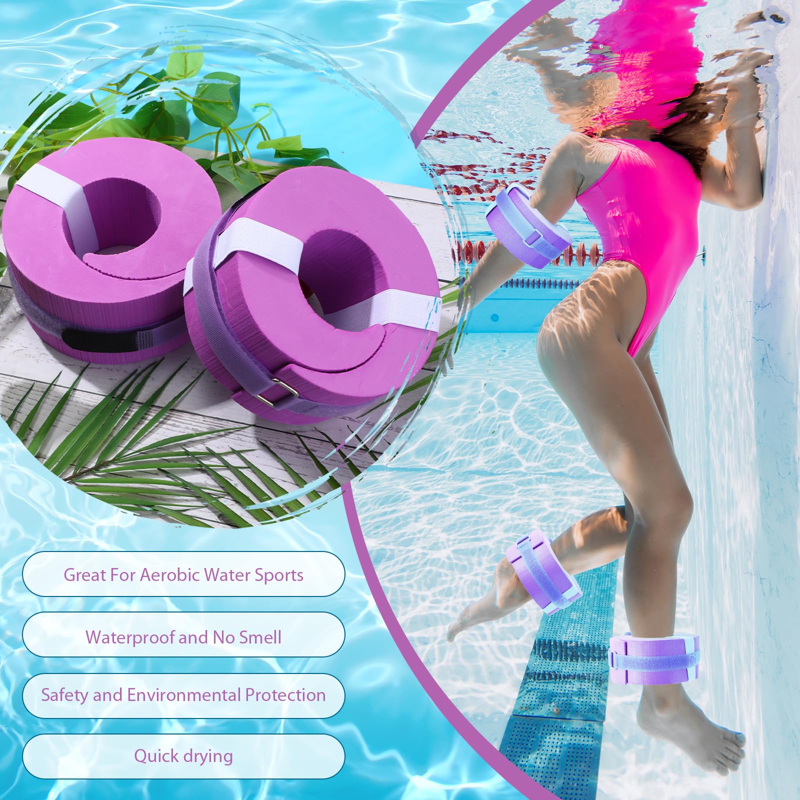 RoundFunny 2 Pcs Foam Swim Aquatic Cuffs Equipment Water Aerobics Float Ring with Detachable Hook and Loop Fastener Fitness Workout Set for Swimming Fitness Training Pool Exercise (Purple)