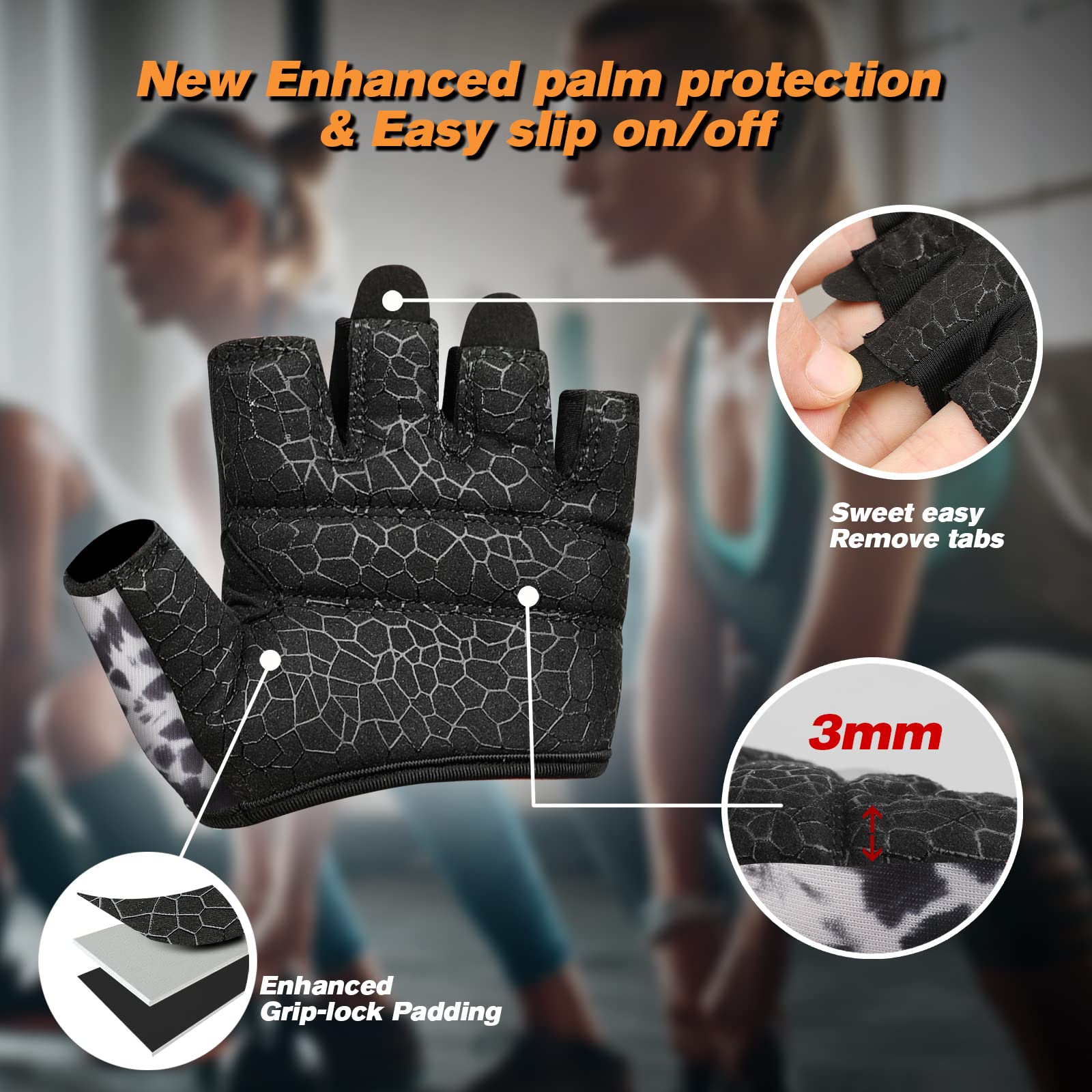 Details: MAXIMUM HAND PROTECTION * No more torn hands and no more calluses. This premium workout glove covers the entire palm and the thumb of your hand is also protected. Made of Silicon Printed material, a high quality material which is resistant to water, dangerous chemicals, oils, heat and aging making for a long last durable pair of gloves. LESS RIPS AND TARES, MORE PEPS AND PR'S. PALM PROTECTION AND EXTRA GRIP - This weightlifting built-in high density FOAM PAD on the palm will buffer the impact of sport apparatus, protecting your hands from calluses and blisters. Honeycomb structure printed silica gel anti-skid to enhance the grip. Most of all, the palm of Gloves are made of quality Microfiber, a durable and ultralight material. COMFORTABLE FIT & LONG LASTING - The lightweight gym Glover’s back are made of LYCRA breathable fabric will keep your hands dry and workouts comfortably. The QUICK REMOVAL PULL TABS allow for quick removal of the gloves after use. NO wristband style PERFECT FIT to wear the fitness watch, to do weight lifting, Pull Up, Exercise, Fitness, Rowing, Gym Training, Powerlifting, Snatches, Cross fit, yoga, cycling and more. STYLISH PATTERN DESIGN - When your look better, you feel better, and ultimately it shows in your performance. Whether you're doing Exercise Training, high intense wods, or general gym weightlifting gloves fits the occasion. It’s suitable for women, men, adults and teenagers; NO HASSLE RETURNS & 100% MONEY BACK WARRANTY - You have no risk to have a try, just need to believe, we will be always with you. If For Whatever Reason You Don't Absolutely Love Your Exercise Gloves. Just Return It, And We'll Refund Every Penny (Or Replace It, If There Is a Problem)