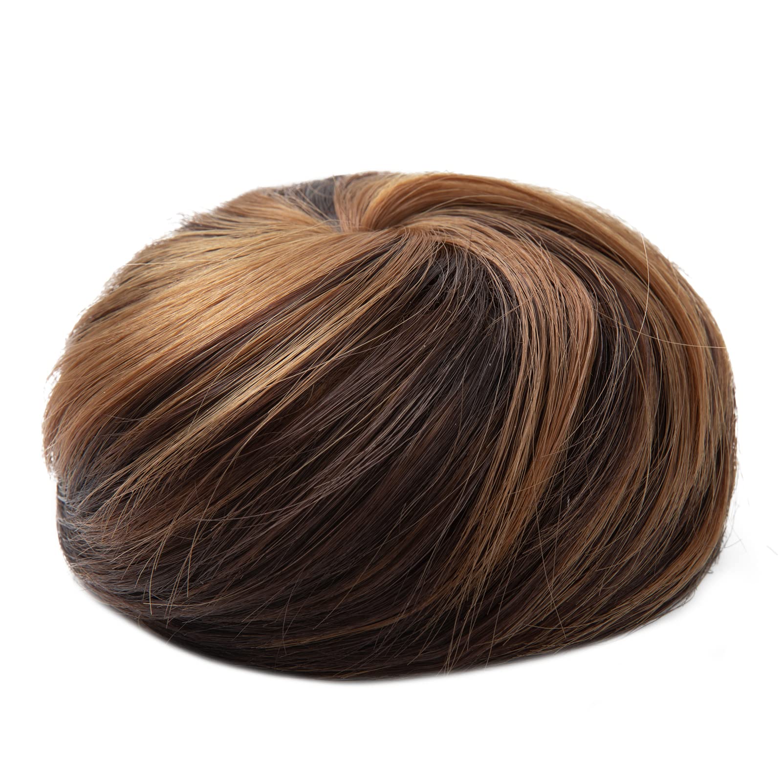 SARLA Drawstring Hair Bun Extension Dark Brown/Golden Synthetic Fake Ballet Bun Hair Piece for Women Girls Lady Updo Donut Chignon