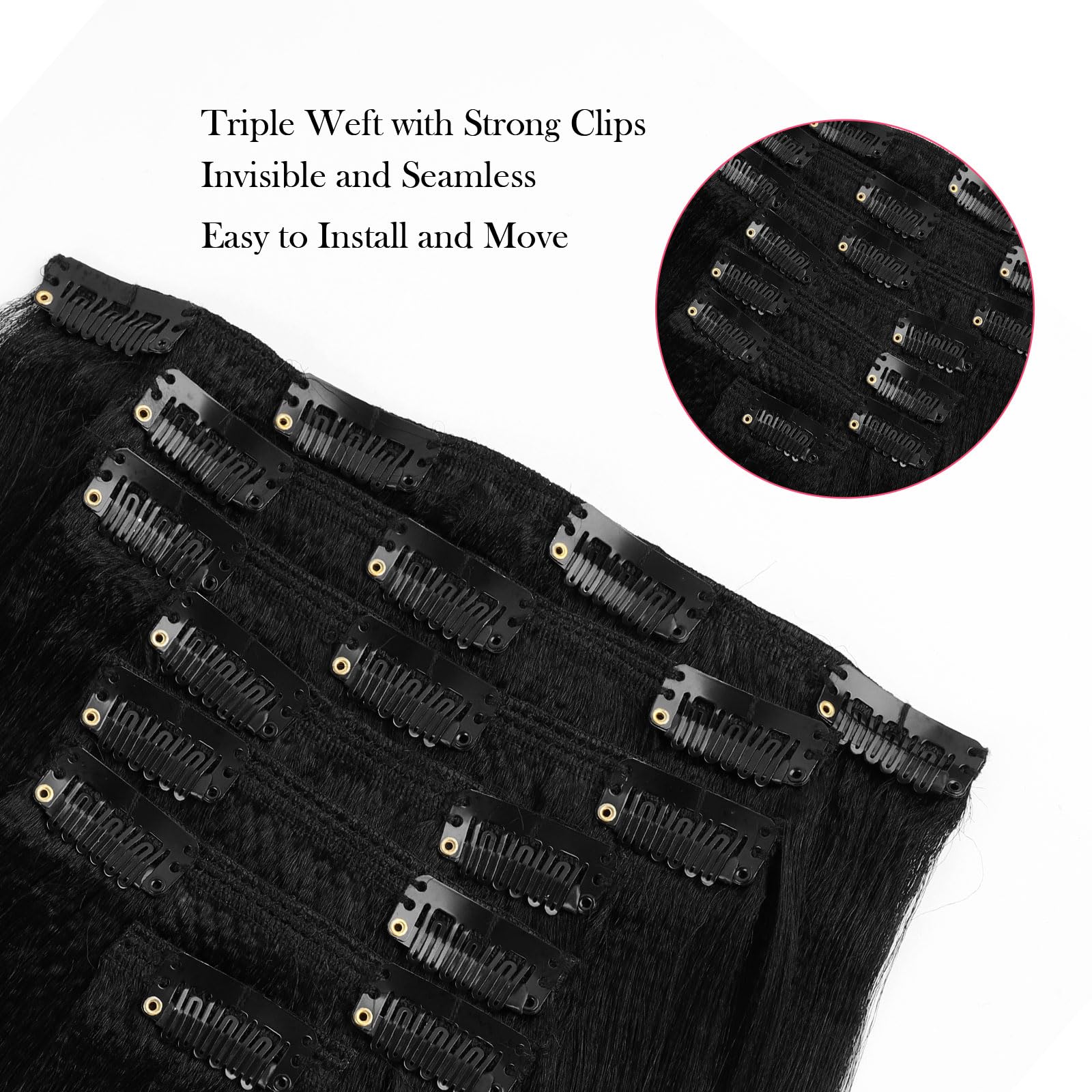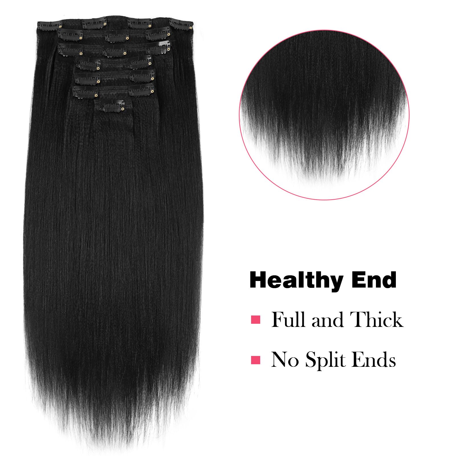 - Advantages: The Yaki Straight Clip-ins Hair is soft, weft and silky, Thick enough to make a full head. No shedding, No tangling, No lices, Can be straightened, curled, dyed, bleached and styled as your demand.