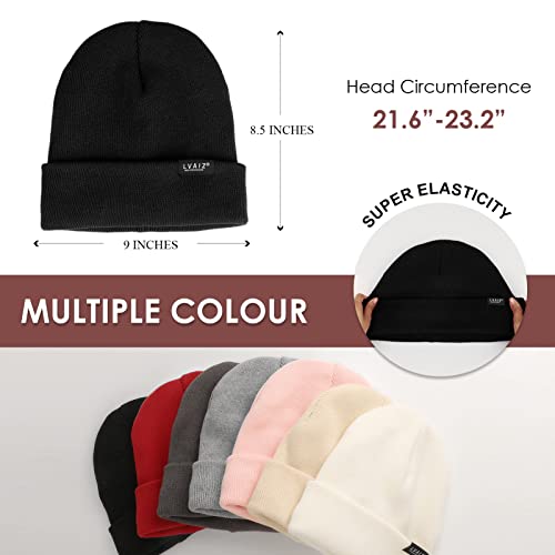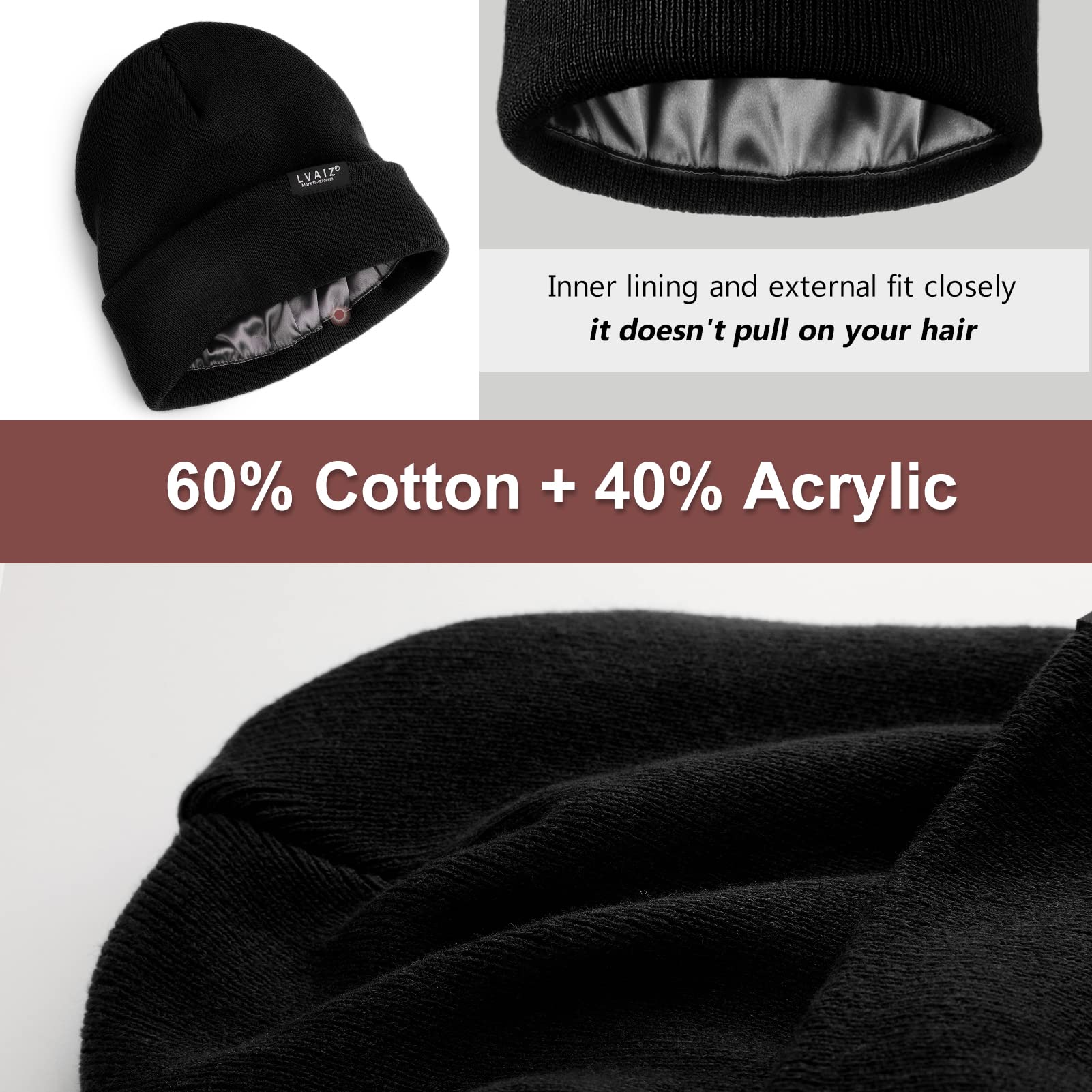 Satin Lined Winter Beanie Hats for Women Unisex Cotton Knitted Cuffed Knit Hat with Silky Lining Slouchy Skull Cap Black