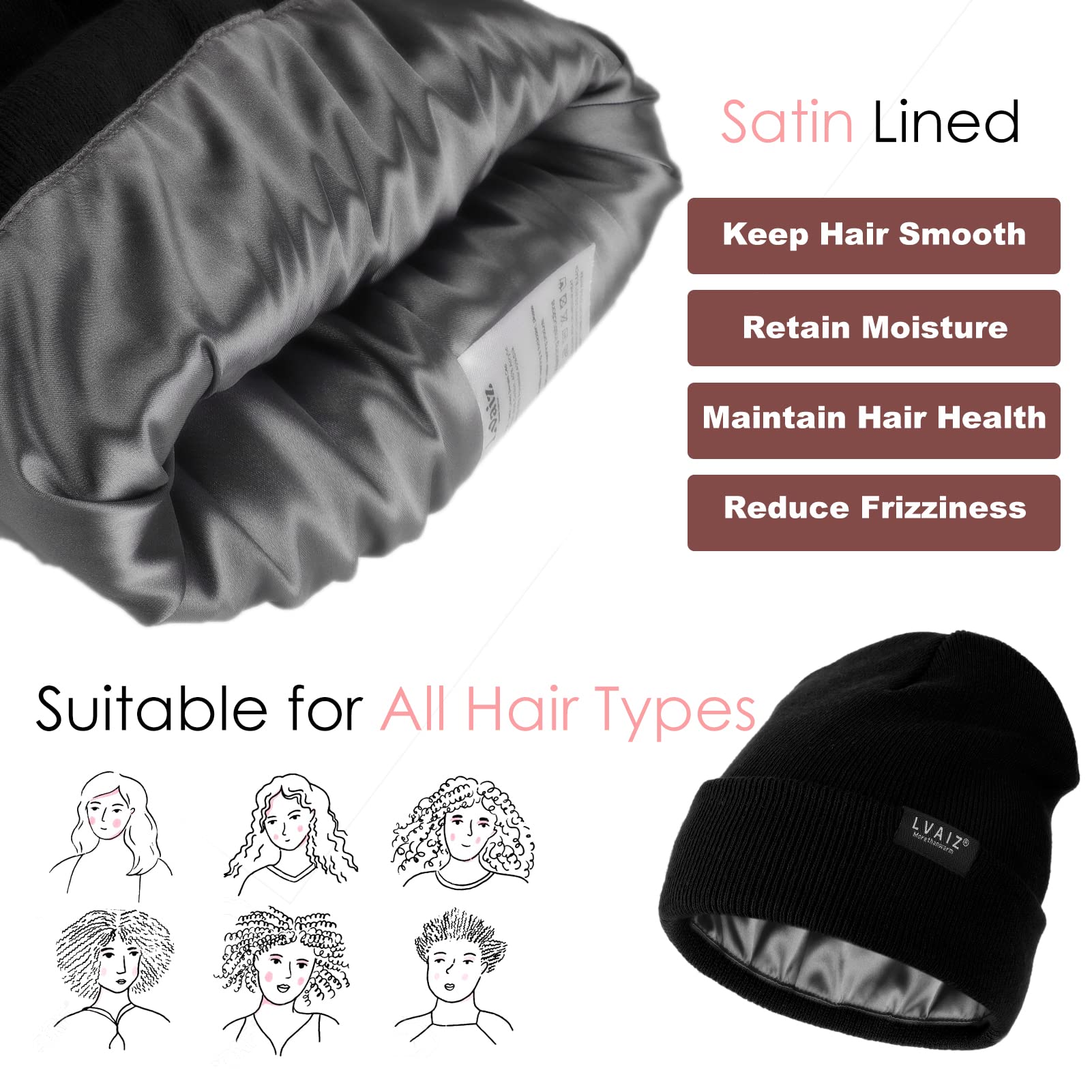 - ADVANTAGE OF SATIN LINING: Beanie hat's satin lining is an innovative breakthrough for traditional knit caps! With the warm satin beanie, you don't have to worry about your hair getting messy when you take it off. The satin lining accommodates your hair more comfortably and easily due to its smooth properties. Slouchy knit beanie's satin lining also protects your hair from the dry winter air and prevents split ends due to moisture loss.