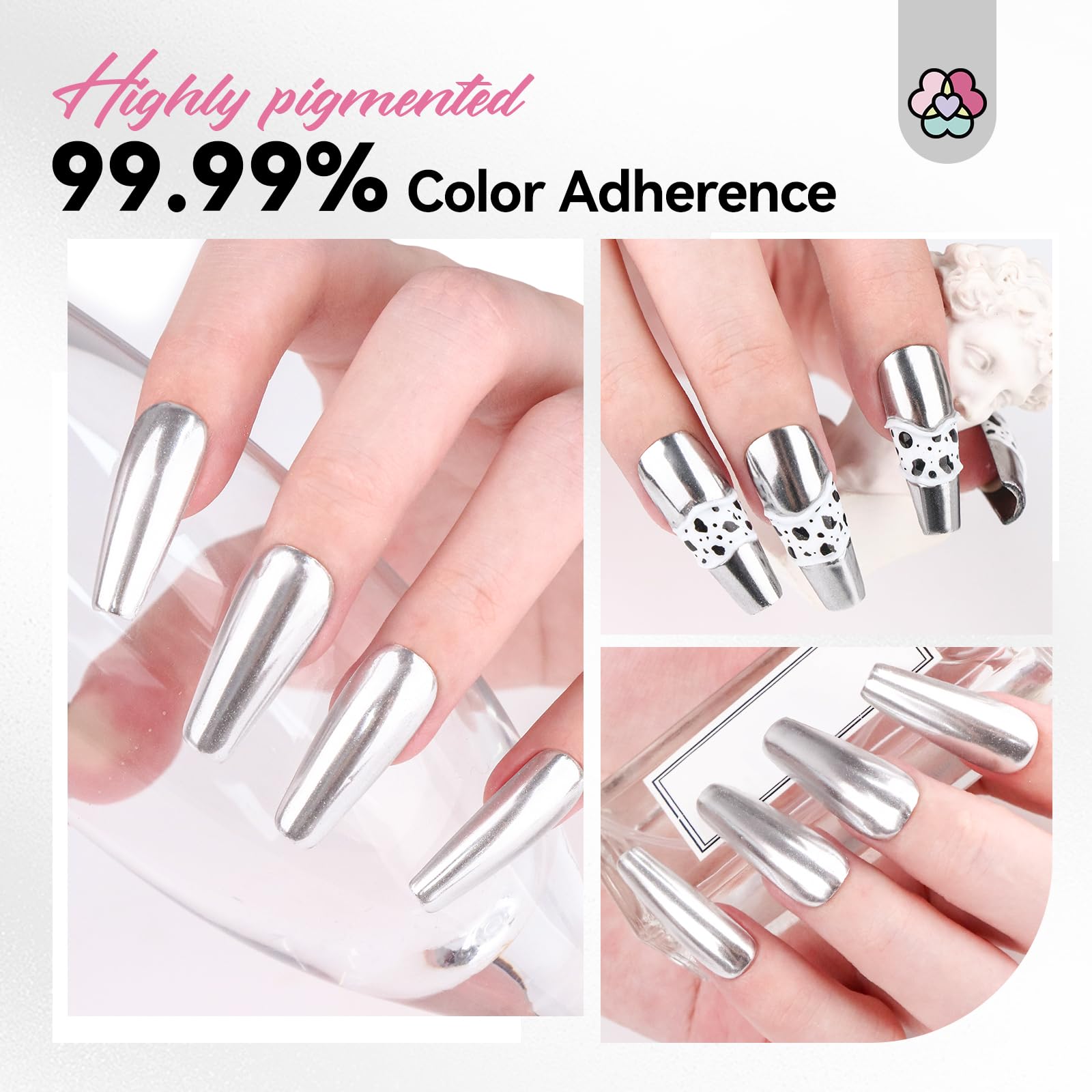 - Flexible & Long-lasting: Crafted for U V gel nails, acrylic nails, natural and artificial nails, our silver nail chrome powder ensures a chip-resistant, long-wearing manicure. Enjoy mirror chrome effect for up to 28 days without peeling or chipping easily