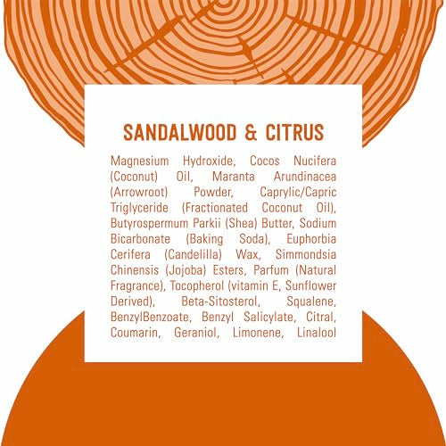 Details: Really Works. Schmidt’s Sandalwood & Citrus— Formulated with certified 100% natural origin ingredients, this deodorant for women and men is made without aluminum. It’s also certified vegan by Vegan Action and cruelty-free by Leaping Bunny. Our women's and men’s deodorants are naturally enriched with magnesium to help neutralize odor and keep you fresh with 24-hour odor protection that’s gentle on skin. Schmidt’s offers some of the best smelling deodorants for men and women and is made with plant-based oils and butters like coconut oil, jojoba seed oil, and shea moisture butter, as well as vitamin E. Luxurious, long-lasting scents made with 100% natural origin fragrance are never synthetic, always made with plant isolates and essential oils like tea tree oil, jasmine oil, and lavender oil. All our Schmidt’s vegan deodorant sticks require only a small amount for overall effectiveness. To use, hold the deodorant briefly to skin to soften on contact with your body heat. Gently apply 1–2 swipes to dry, clean underarms to keep you feeling fresh all day. This aluminum free deodorant for men and women uses a non-greasy/non-sticky formula that is easily absorbed. Do not apply to irritated, damaged, or freshly shaved skin.