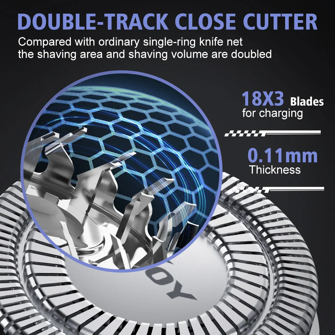 The knife net blades are double-loop design, which greatly increases the knife net and face contact area, and the shaving efficiency is doubled.