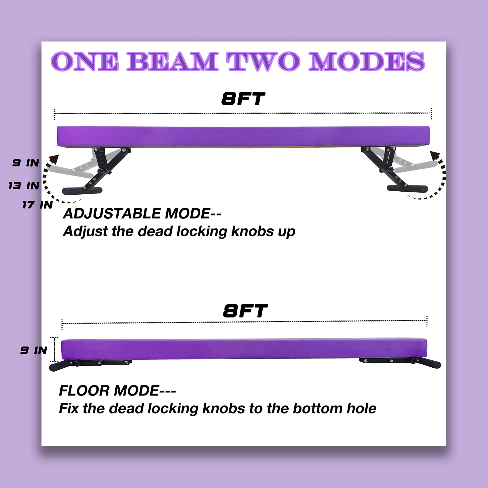 - Perfect Size For Home: The balance beam measures 8 feet in length,4 inches in width. adjustable height, it meets the training requirements of normal gymnastic equipment.weight limit of 350 pounds ,Suitable for both beginners and highly skilled gymnasts
