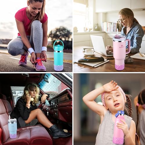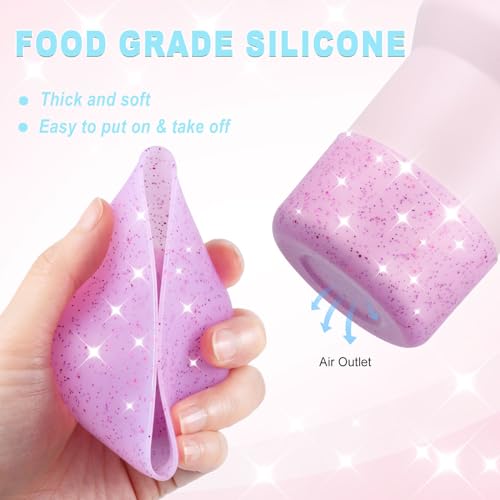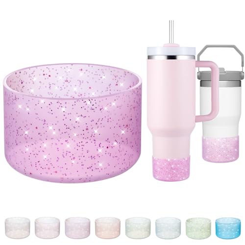 - [Premium Protection to Stanley Tumbler] Glitter silicone bottom cover, specially made with thicker bottom, boot provides better protection to cup than other boots with flat and thin bottom. Cover effectively prevent scratches, dings and anti-noise. Your cups can fit inside car cup holder after placing our silicone boots onto Stanley cups and Iceflow bottles, and other compatible water bottles. Great stanley cup boot accessories for outdoor and sports, office, home and travel.