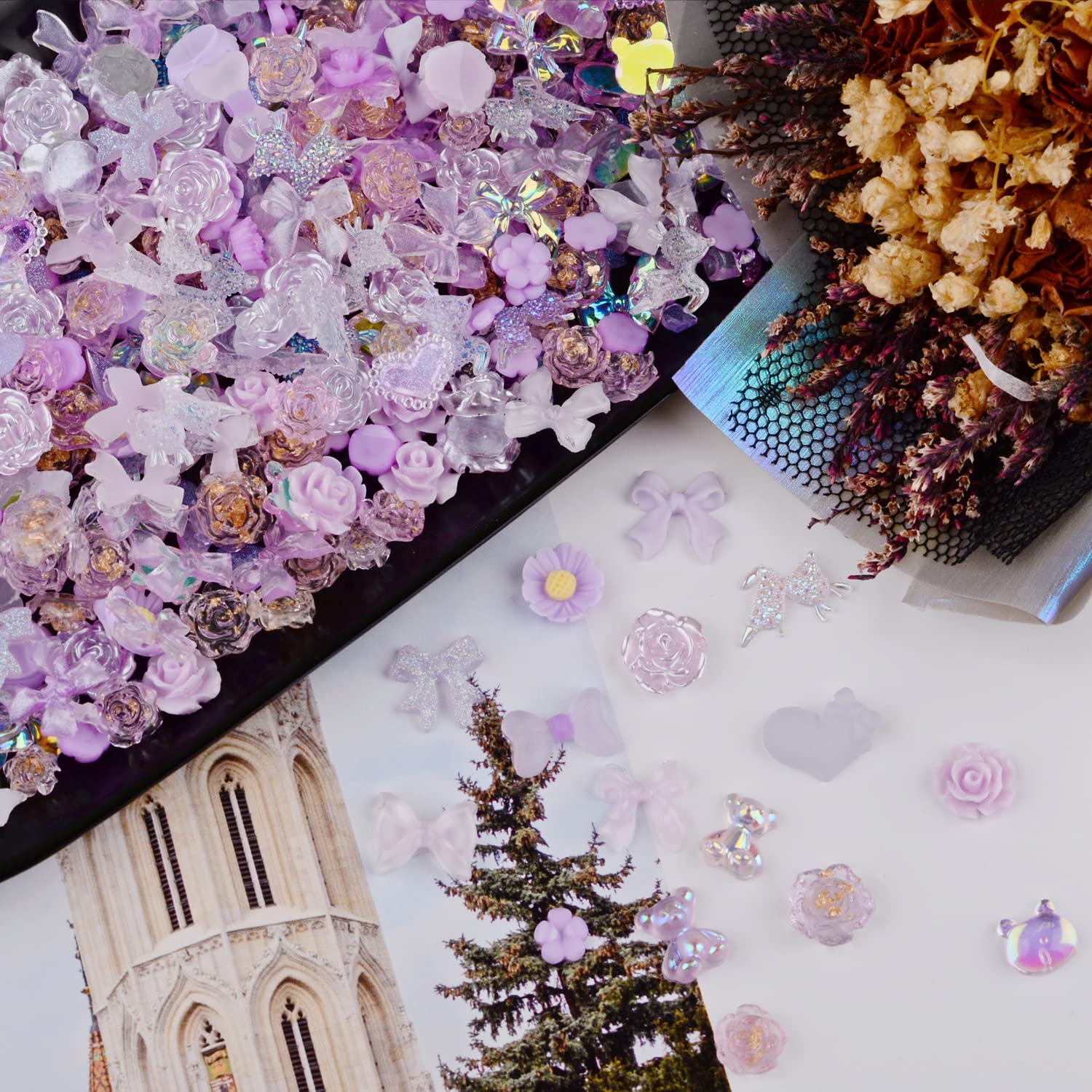 - Different Styles in Package:You will get more than 100pcs purple 3D nail design decorations,100 pcs mixed flatback nail rhinestones pearls,100pcs nail sequins,total over 300pcs.