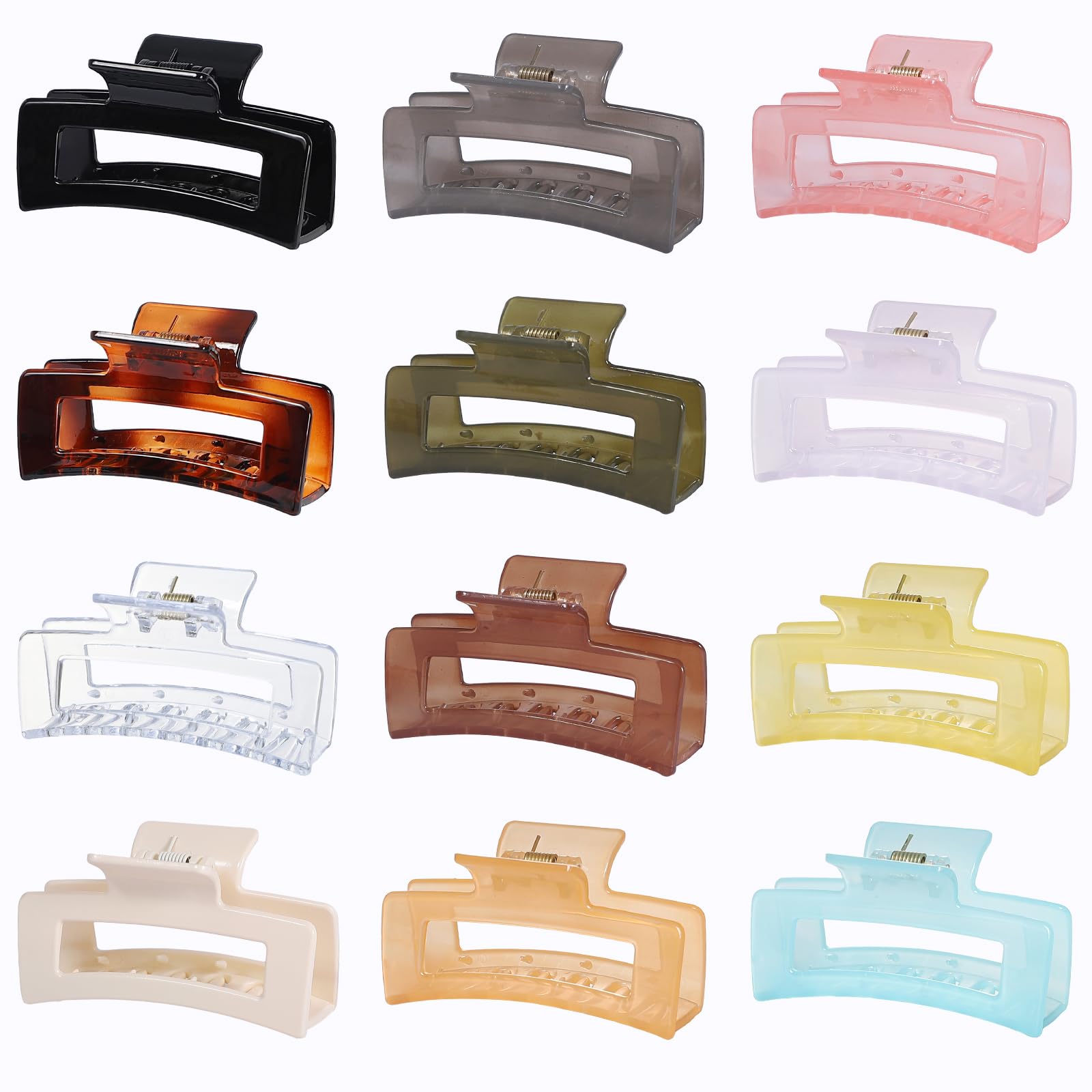 Sisiaipu 12 Pack Medium Square Claw Hair Clips, 3.5 x 2 x 1.1 inch, Shiny, 12 Colors, Hair Accessories for Women and Girls, Rectangular Rectangle Jaw Clips for Thick and Thin Hair Securing, 12 Pieces
