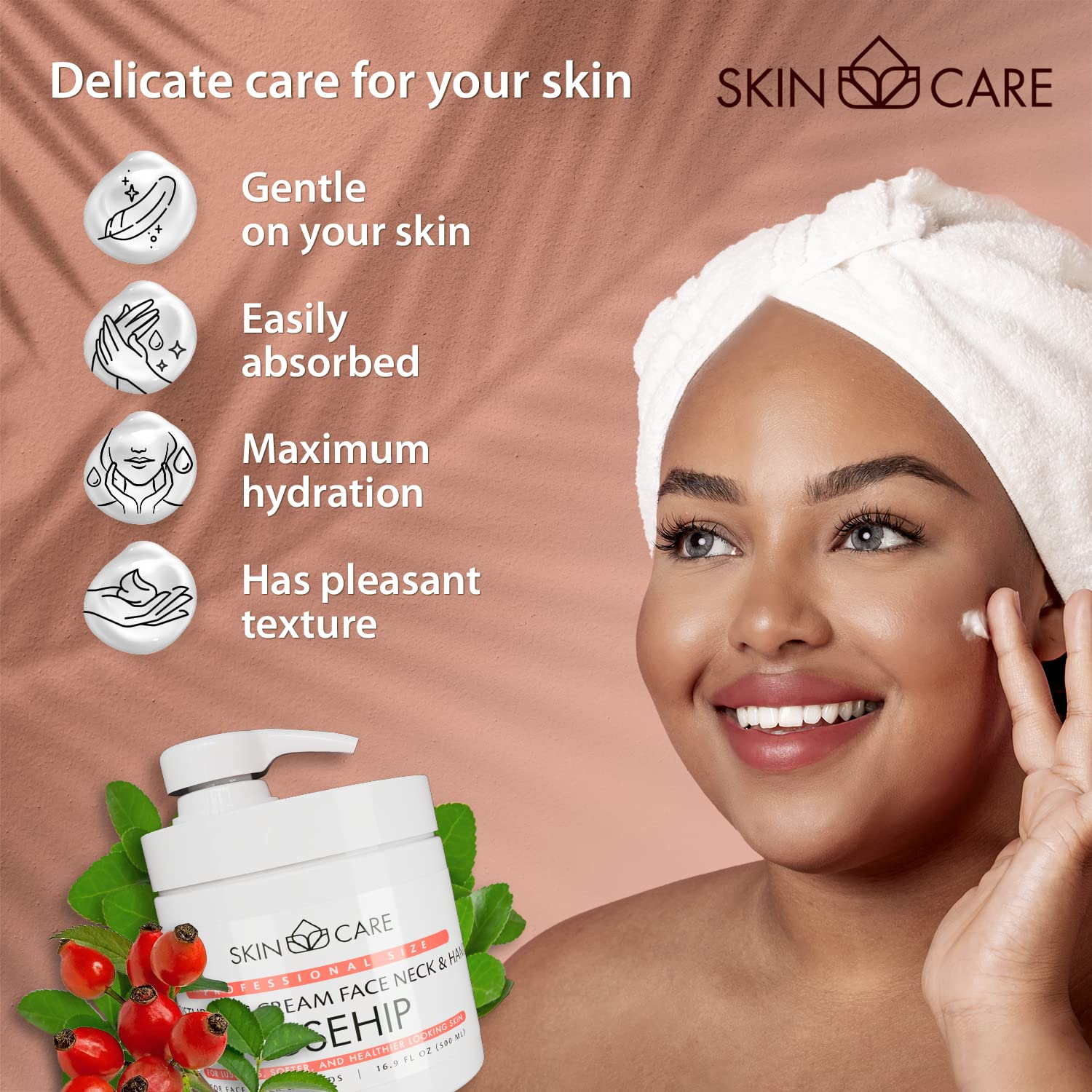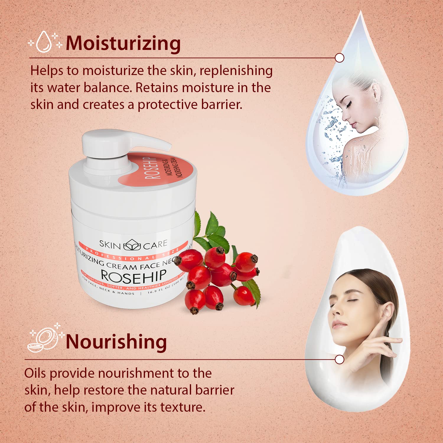 - 3-in-1 Formula - Rosehip Oil face, neck, and hand cream is a versatile skincare solution that saves time and money. Enriched with rosehip oil and nourishing ingredients, it deeply moisturizes and revitalizes the skin, leaving it soft, supple, and rejuvenated.
