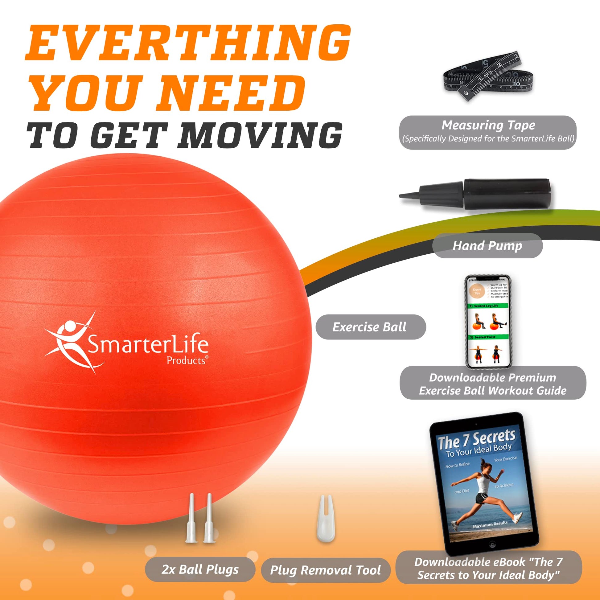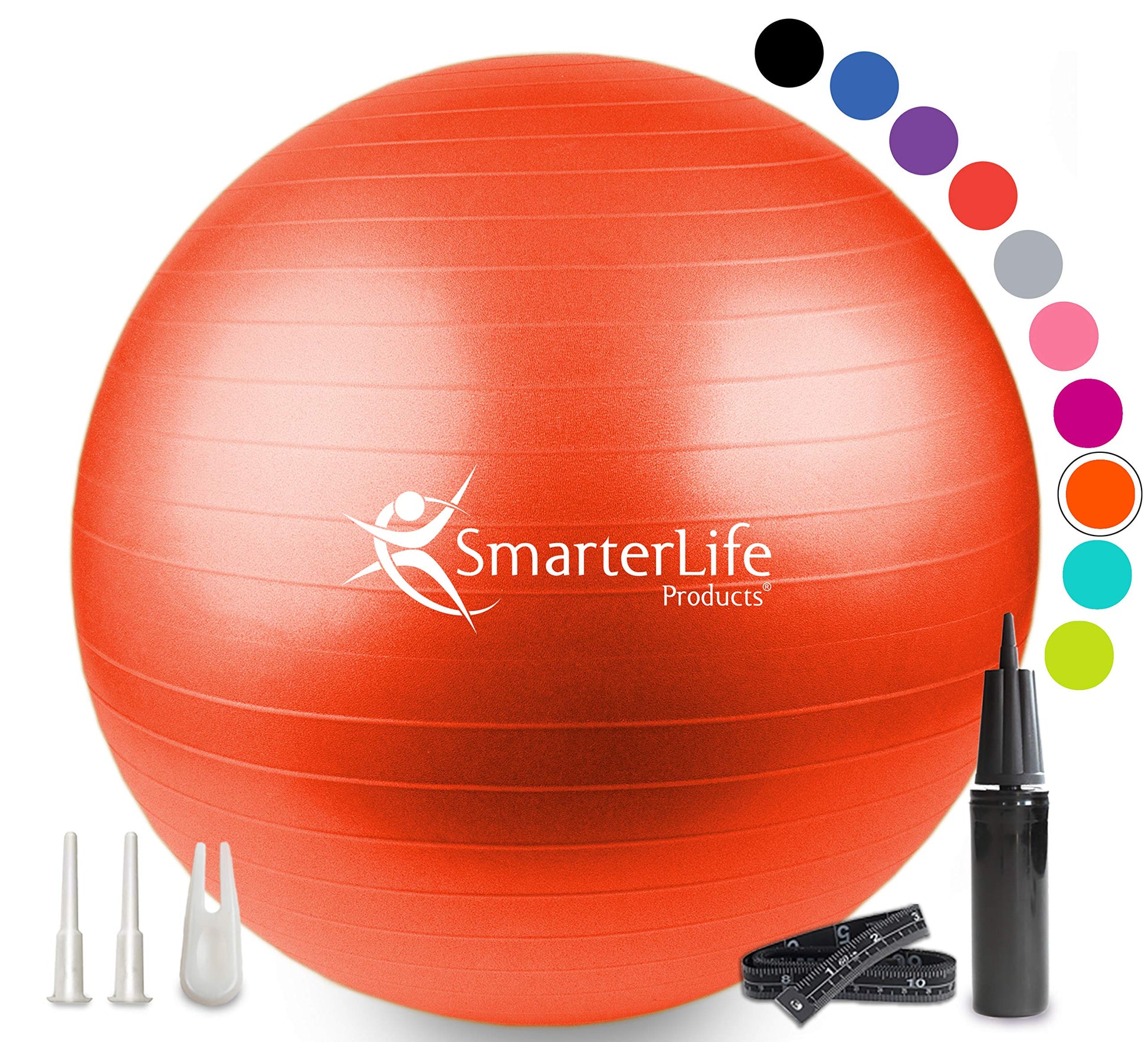 SmarterLife Workout Exercise Ball for Fitness, Yoga, Balance, Stability, or Birthing, Great as Yoga Ball Chair for Office or Exercise Gym Equipment for Home, Non-Slip Design (45 cm, Orange)