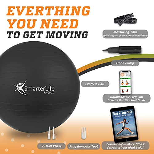 SmarterLife Workout Exercise Ball for Fitness, Yoga, Balance, Stability, or Birthing, Great as Yoga Ball Chair for Office or Exercise Gym Equipment for Home, Non-Slip Design (65 cm, Black)