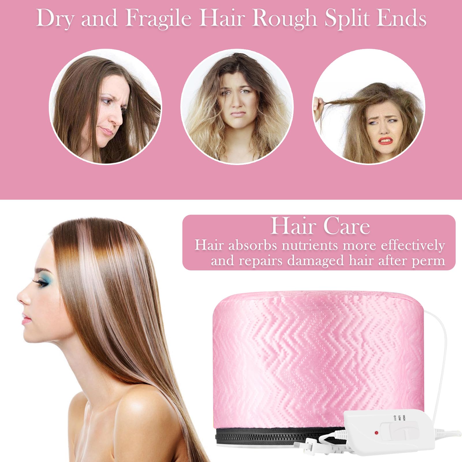 - 【Deeply Nourish & Repair Hair】- Hair steamer cap can effectively reduce hair damage, solve hair frizz and hair ends spilt, and deeply nourish your hair.