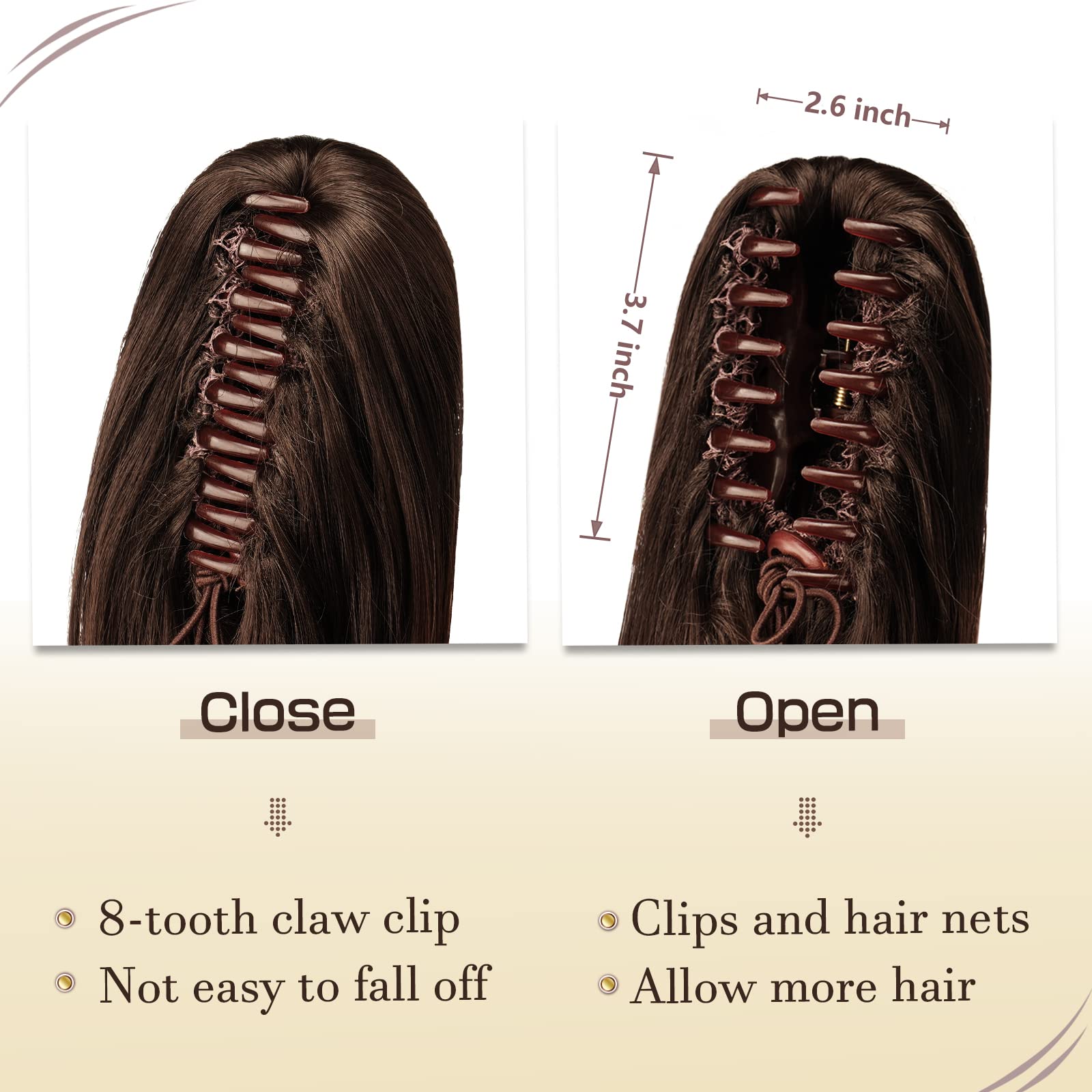 - Ponytail extension with claw clip provides secures and comfortable attachment on your hair for all day