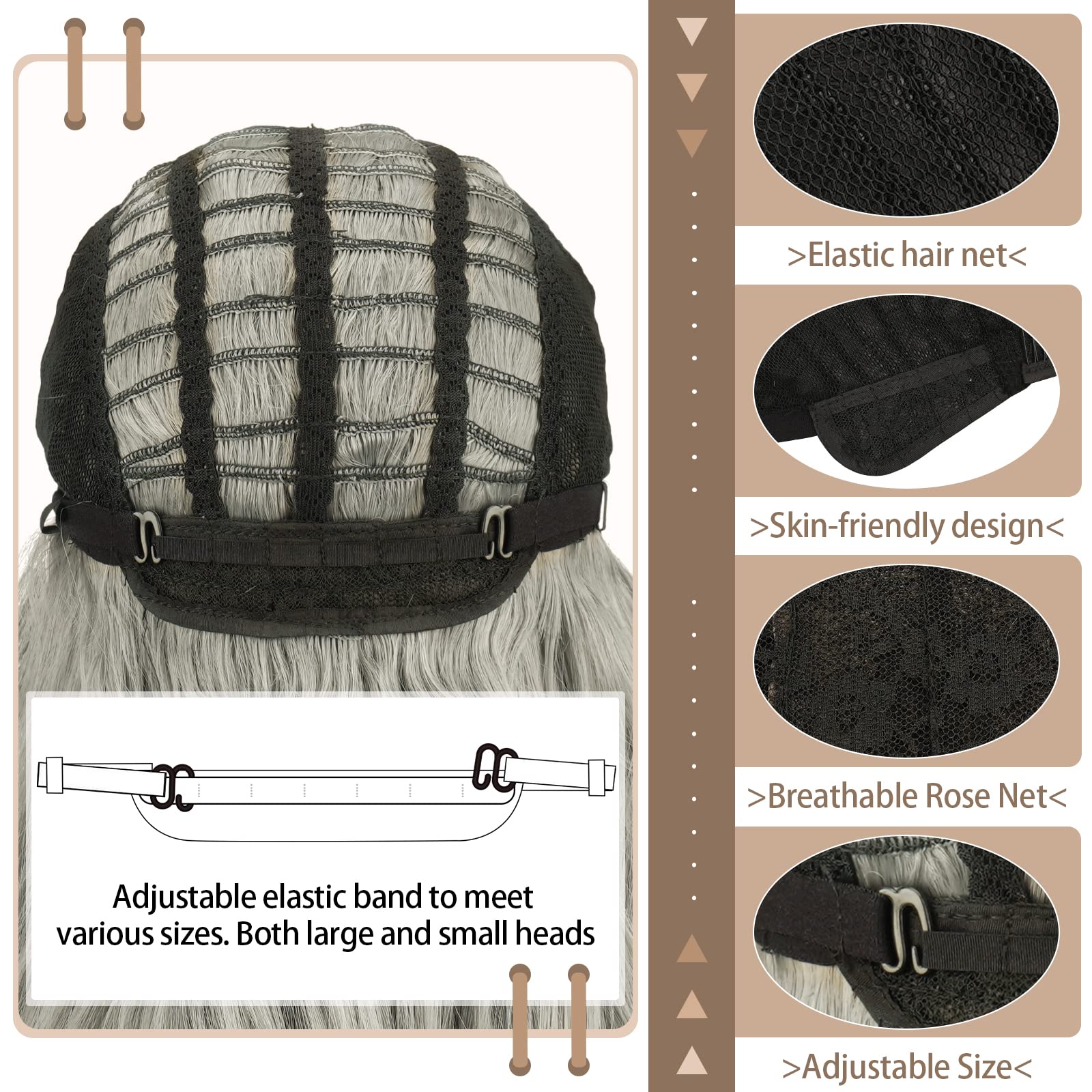 - Adjustable Wig Cap: Elastic breathable rose net, soft and comfortable, breathable and not stuffy. Comfortable to wear, set with a soft elastic adjustment band, the average size of 21-23 inches head circumference, suitable for most people, you can adjust the size according to the head circumference. Both sides fixed hairpin, solid and not easy to fall off