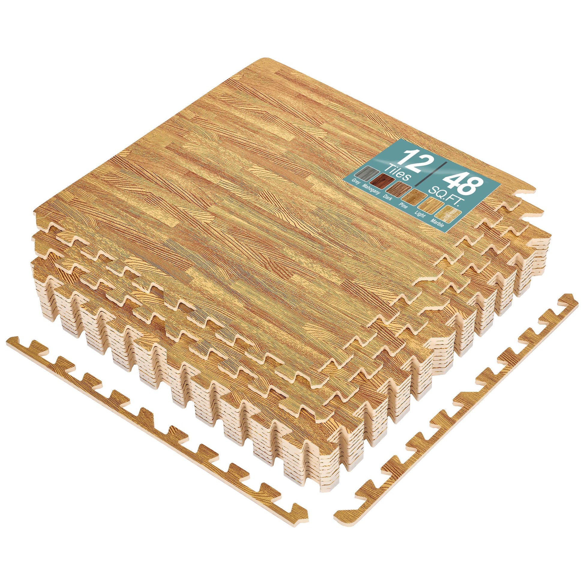 - Wood Grain Floor Mat (12 Tiles, Light): Provides comfort and cushion to hard floor surfaces with classic faux wood finish β Includes 12 floor mat wood grain tiles to enhance the comfort and appearance of your space