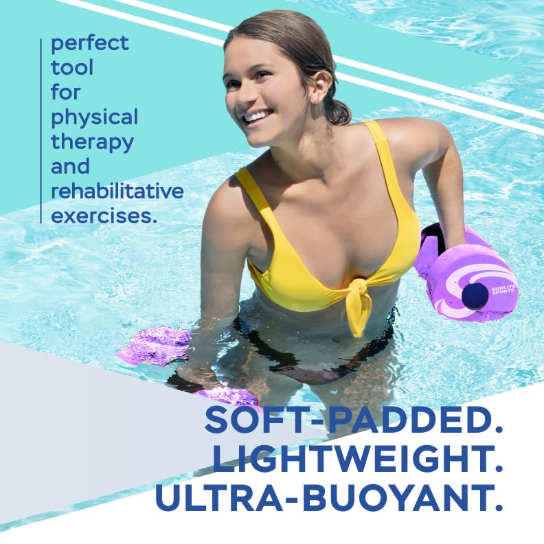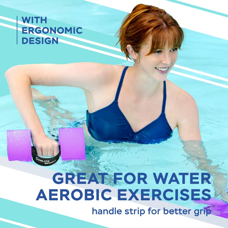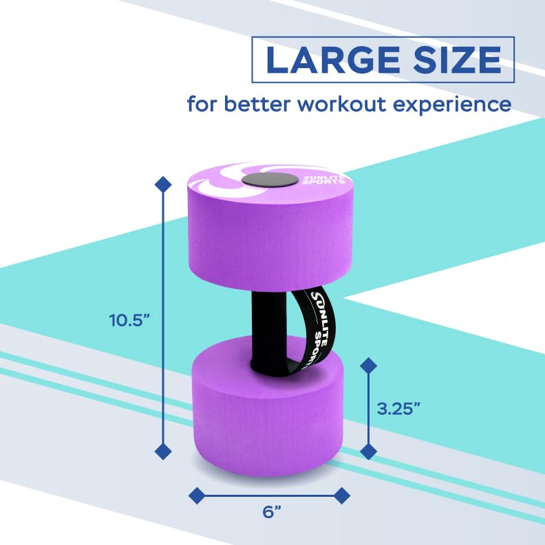 Sunlite Sports Water Weights Pool Exercise Dumbbells, Water Aerobic Equipment, High-Density EVA-Foam Dumbbell with Handle Strip, Aqua Therapy, Pool Fitness, Water Exercise, Set of 2