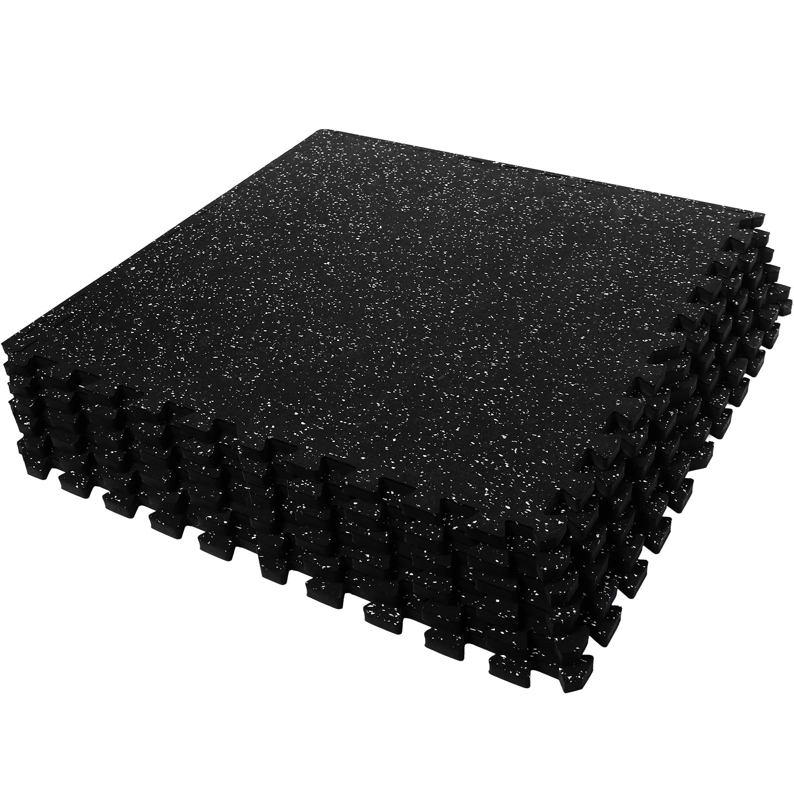SUPERJARE 0.56'' Thick 6 Pcs 24 Sq Ft Rubber Top Exercise Equipment Mats, High Density EVA Foam Mats with Rubber Top, Interlocking Gym Flooring for Home Gym, Protective Workout Mat, Black/Grey