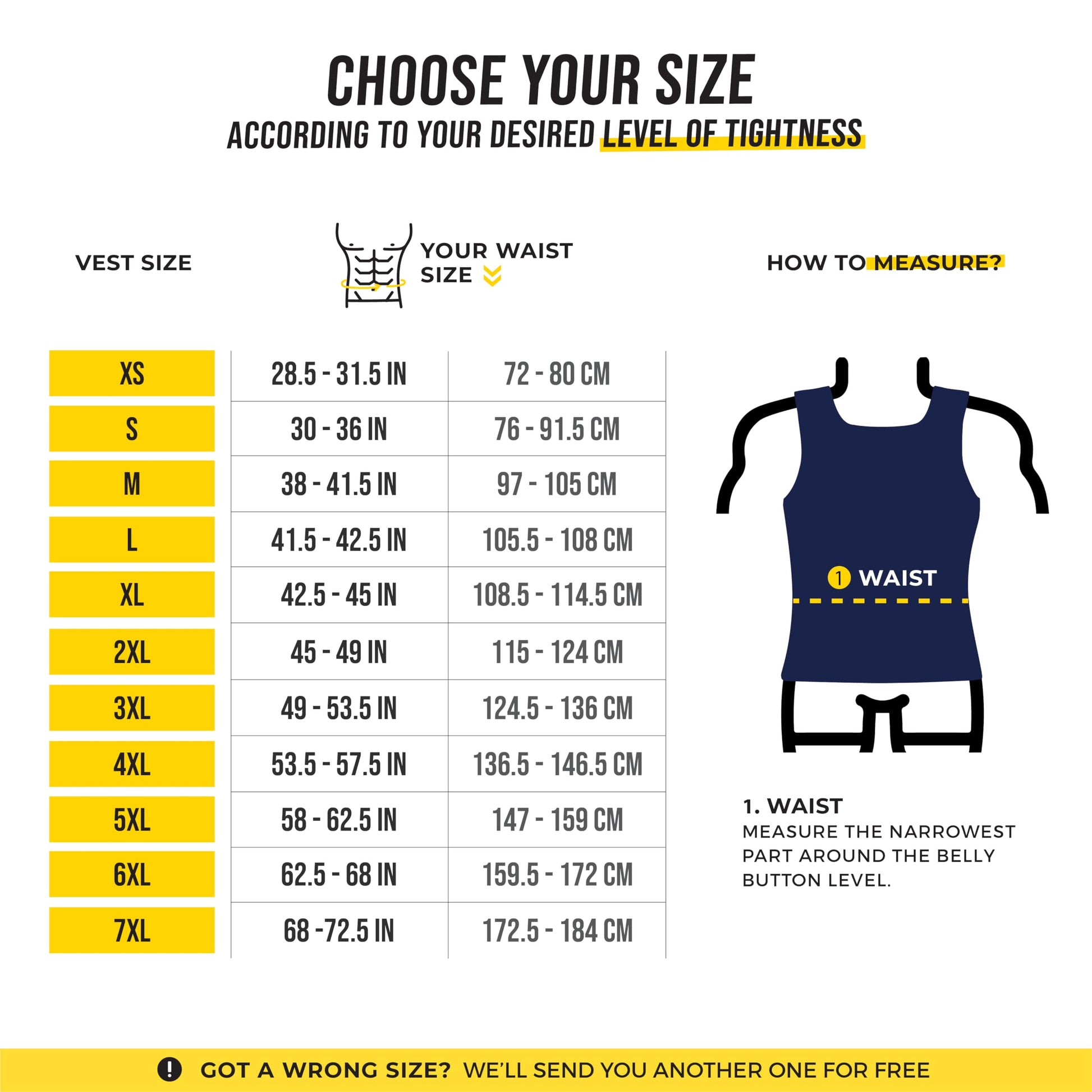 - GOODBYE BELLY FAT: Our compression design ensures a snug fit without compromising on comfort. Our sweat vest is specifically tailored to the male physique for optimal results. Every menâs waist trainer in our collection is built to enhance workout results. Wear it discreetly under any outfit and watch your body transform! This mens waist trainer for weight loss, tucks your tummy in, trims your waistline, and gives you a more toned and athletic look, while working its magic in the background.