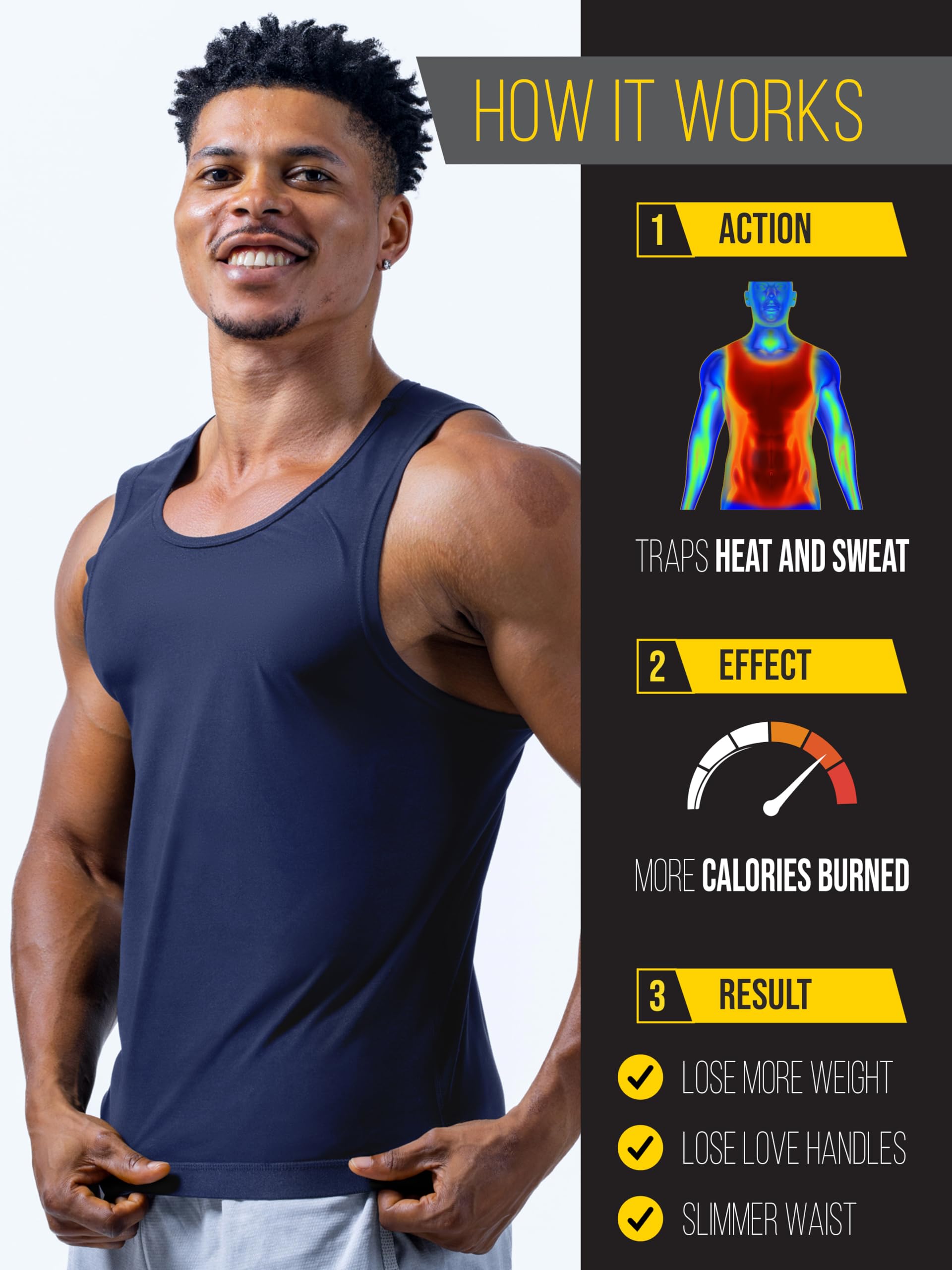 - BOOST WORKOUTS, SWEAT MORE: Our sweat vest for men weight loss is not only efficient but also stylish and discreet. It can help boost your workout efforts by increasing your natural body heat and stimulating sweating during physical activity. Enjoy a sauna-like experience while working out with our sauna vest for men, which mimics the effects of a sauna, intensifying the sweat output.