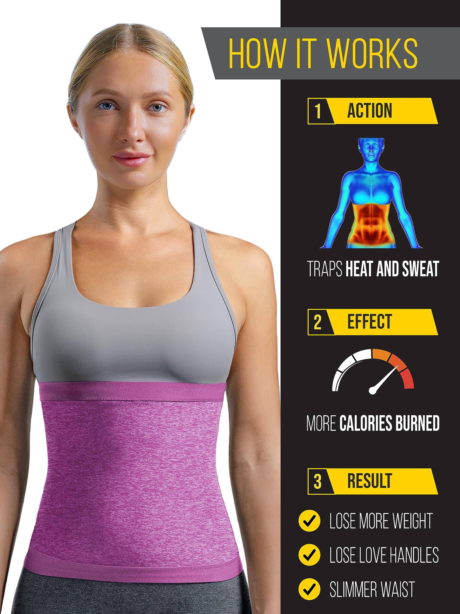 - Say Goodbye to Belly Fat: Waste less time, let our compression Women's Sweat Waist Trimmer be your secret weapon in achieving a slimmer waistline. It discreetly cinches your midsection, trims your stomach, and enhances your overall physique, seamlessly blending into your fitness routine. Your Personal Sauna Slimmer: Step into a sauna-like experience with our Women's Sweat Waist Trimmer, aiding in weight loss, slimming and serving as a tummy waist trimmer and fat burner.