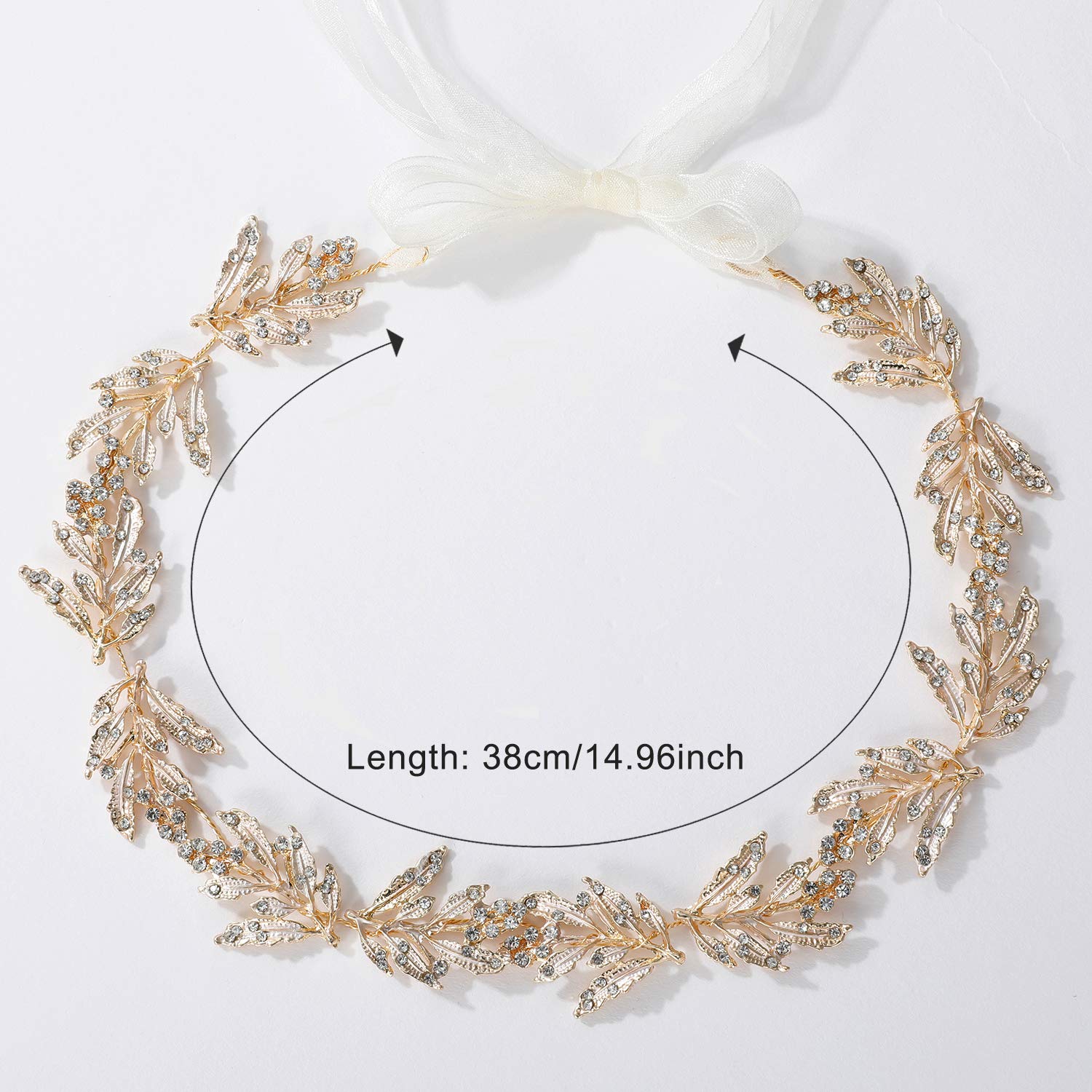 SWEETV Leaf Wedding Headpieces for Bride Flower Girl Gold Bridal Headband with Rhinestones Women Handmade Hair Accessories
