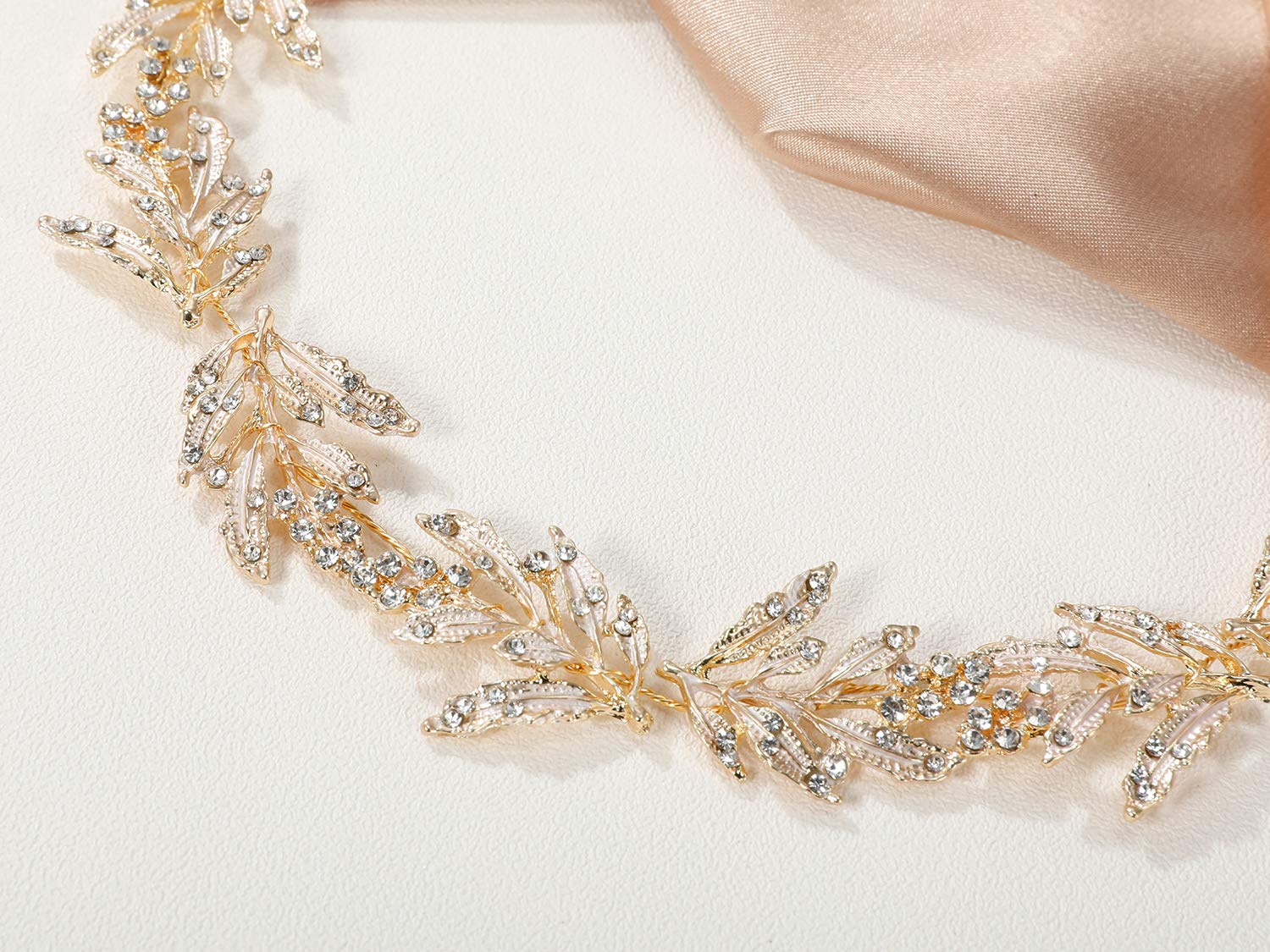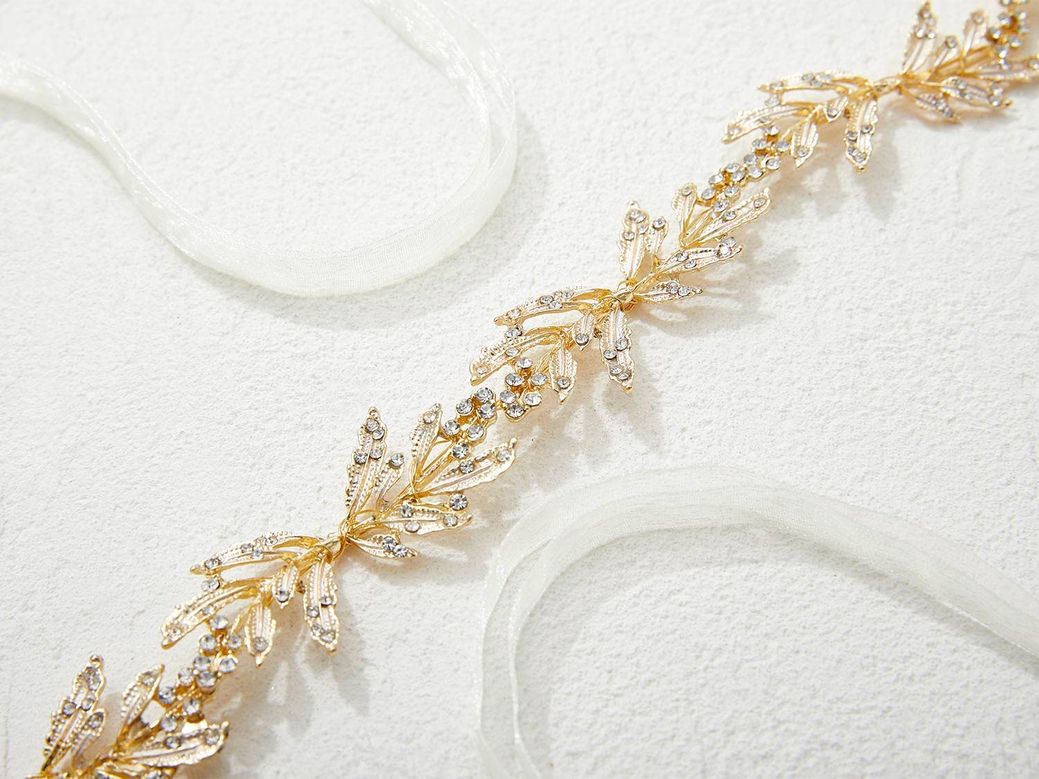 - ๐ฟ Design: A handmade leaf bridal headband with lustrous rhinestones. This simple but exquisite wedding headband would be a great choice for bride/bridesmaid/flower girl.