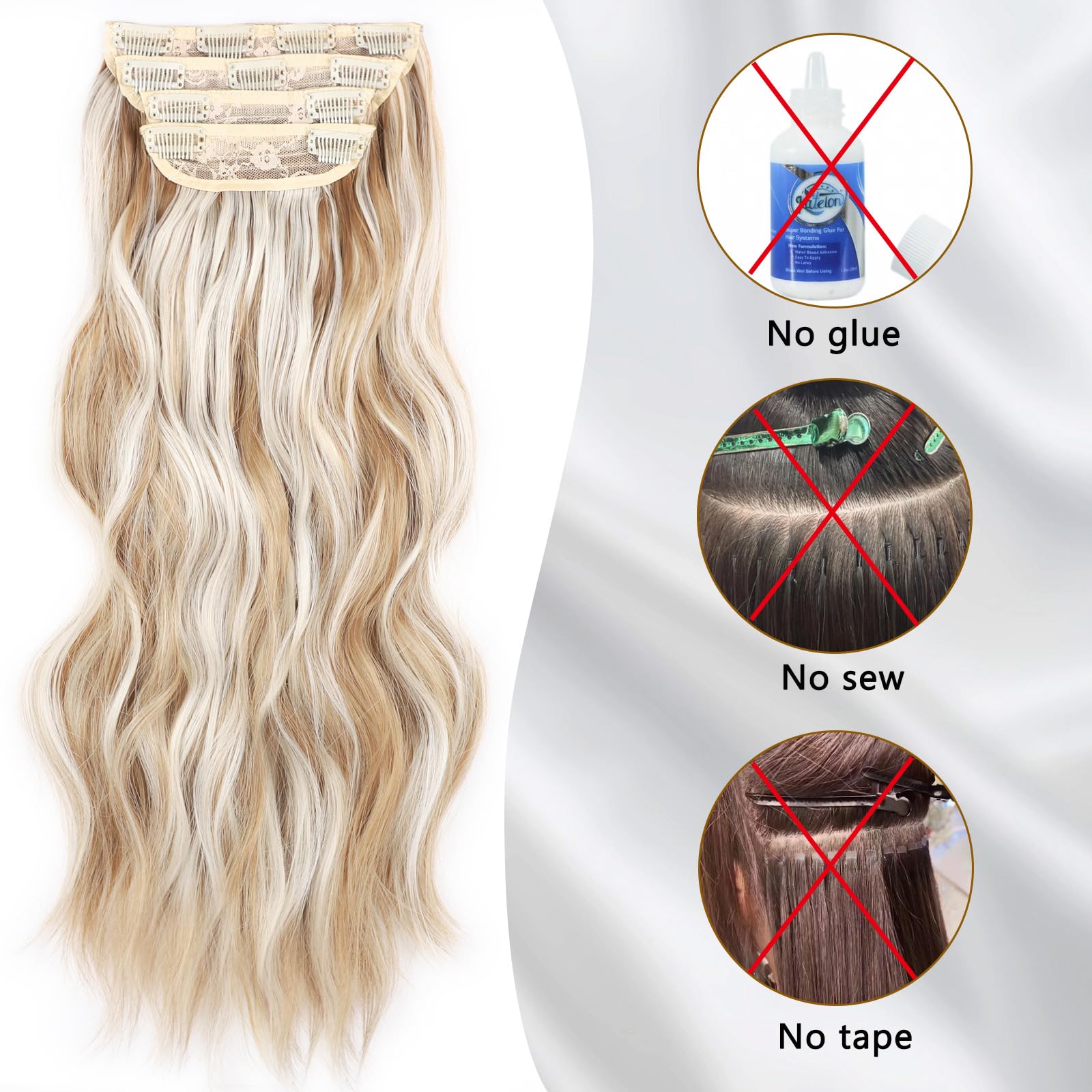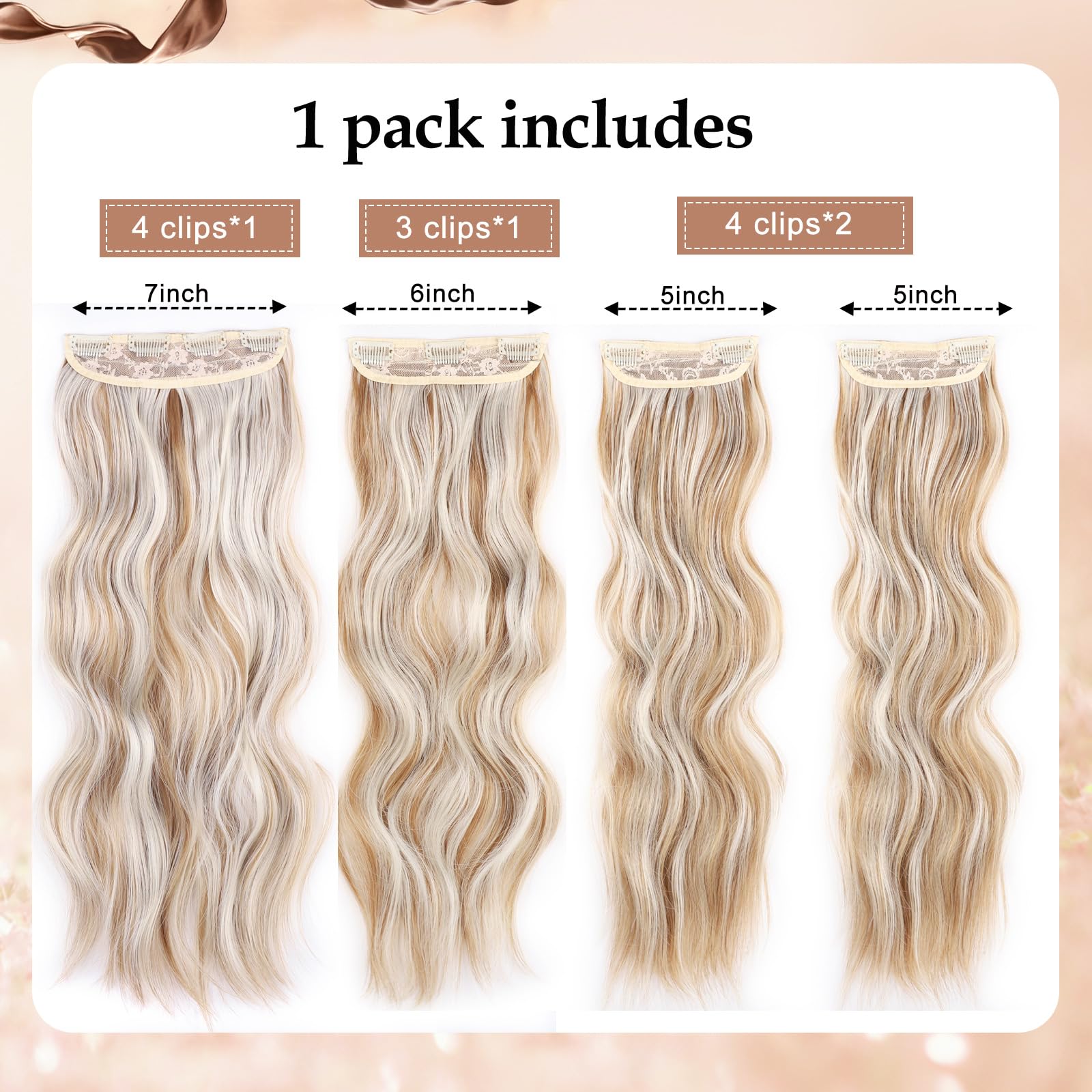 Synthetic Clip in Hair Extensions 20 Inch Caramel Brown Mixed Honey Blonde Hair Extensions for Women 4PCS Highlights Hairpieces for Women Long Wavy Hair Extensions Clip Ins (20INCH, P22/60A)