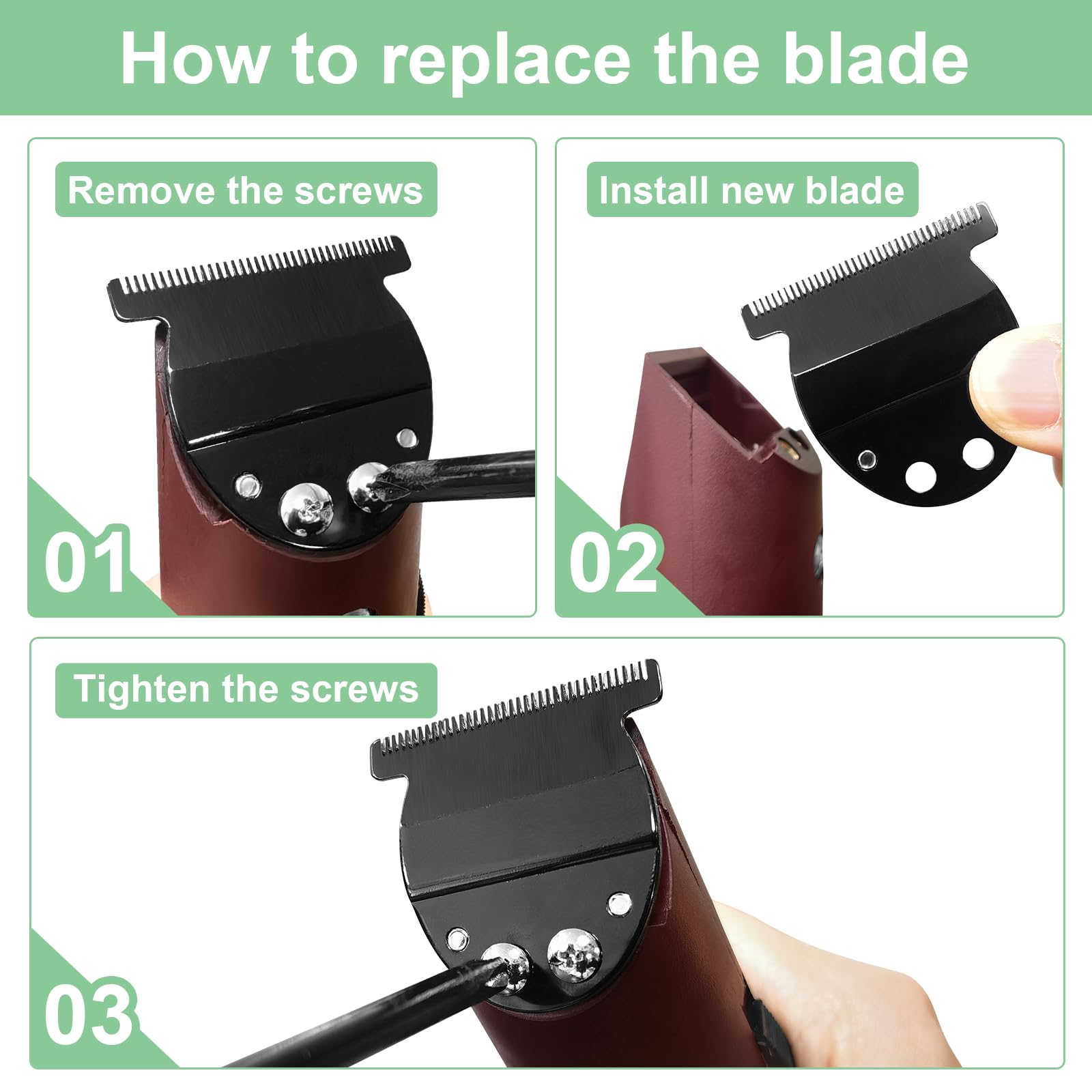 - 【Packaging Includes】1 pack replacement T-blade and blade screws,Wide T-Blade cuts hair to 1/125 inch (0.2mm)
