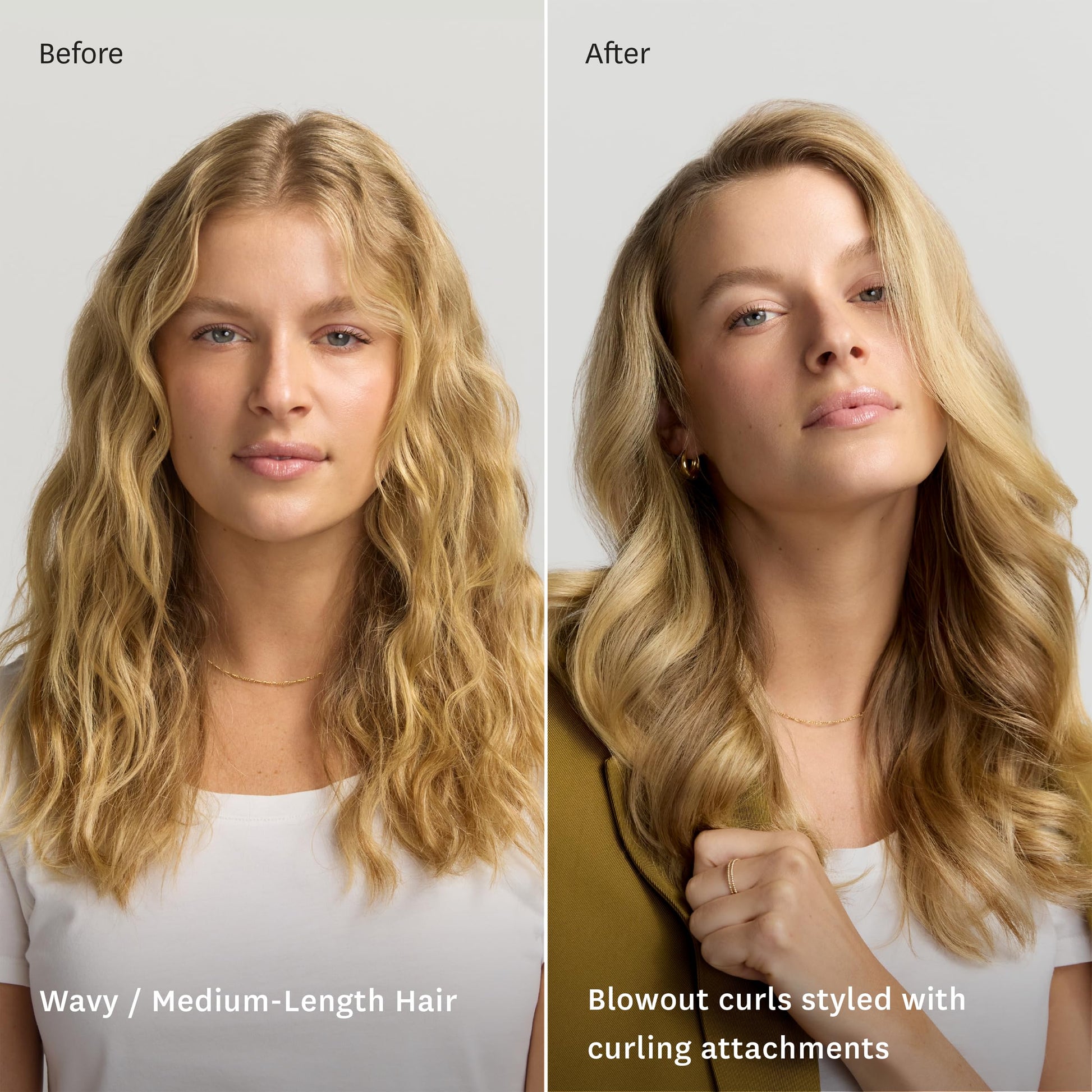• Ceramic curling attachments harness high-performance heat and air to style lasting blowout curls