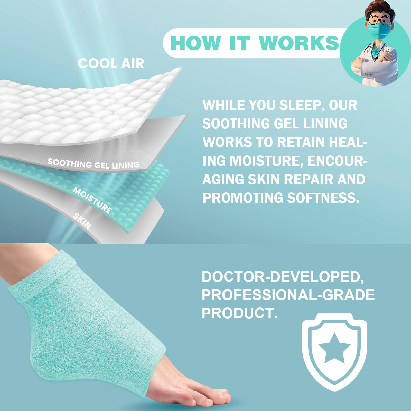 - 【Advanced Gel with Natural Moisturizers】Our ultra fuzzy fabric, which may shed slightly, does not impact comfort. The advanced gel lining infused with Jojoba Oil, Vitamin E, Olive Oil, and Lavender Essential Oil, locks in moisture, keeping feet cool and dry. Ideal for cracked heel treatment and eczema.