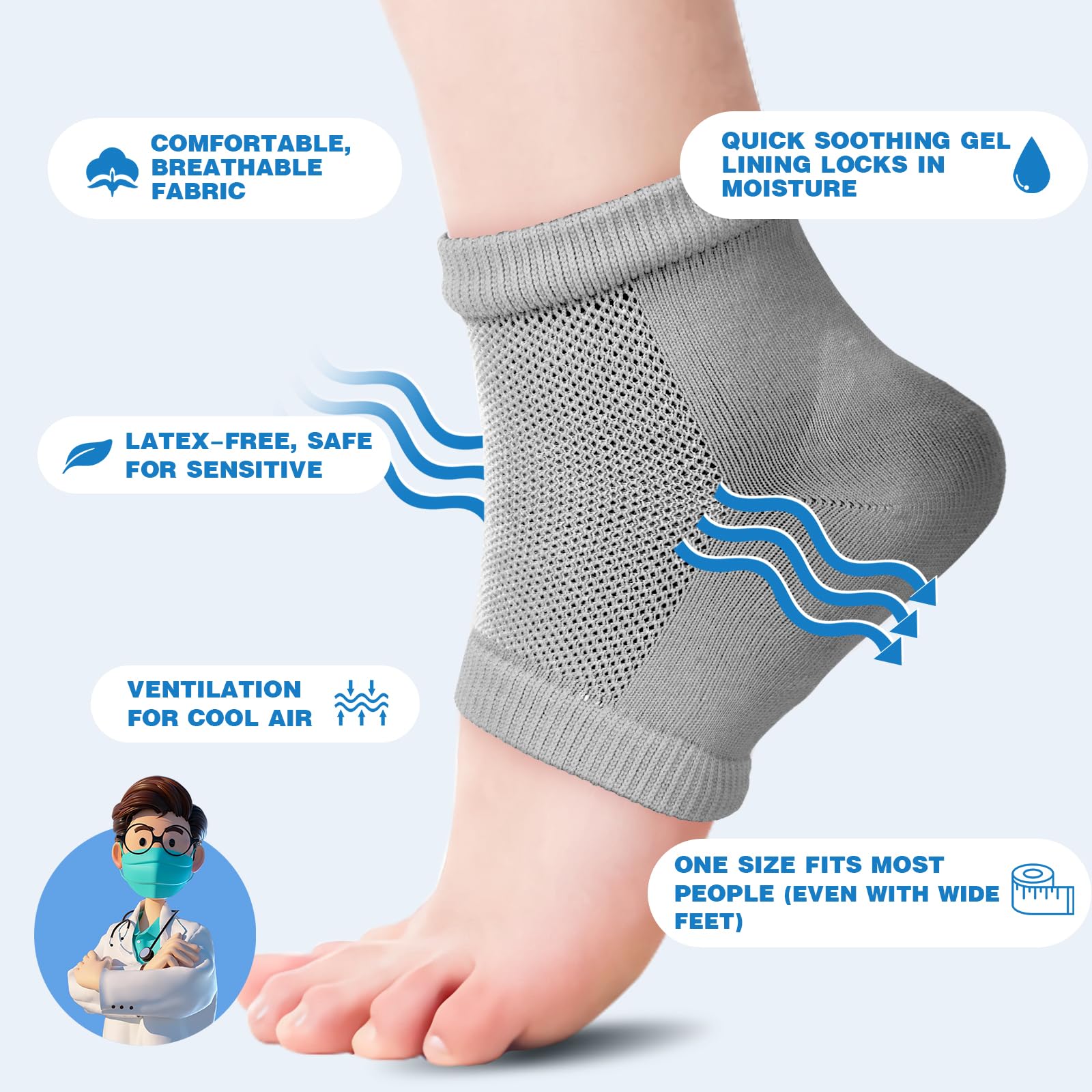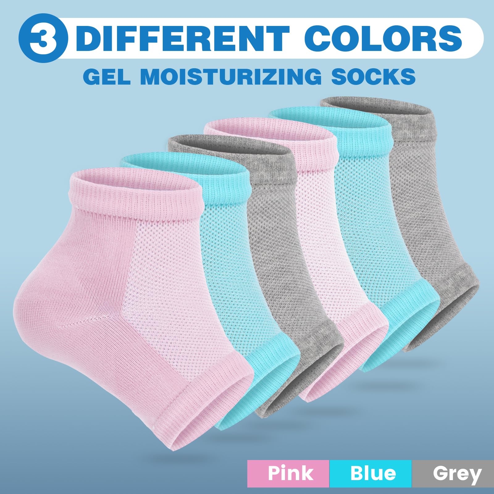 - 【VALUE FOOT CARE PACKAGE】 You will receive 3 pairs of heel socks suitable for dry, cracked feet in grey, blue, pink. No more need for expensive foot care products. By consistently using these moisturizing gel therapy socks, your feet will become smoother and more moisturized