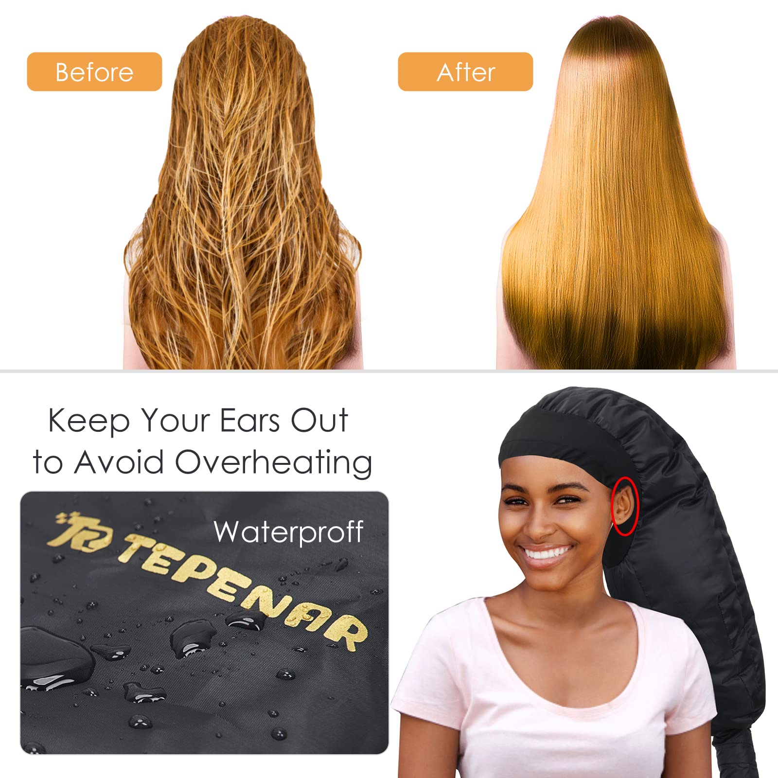 - High Quality and Trusted Service: The hair dryer cap is made with waterproof material, it is high-density sewing, hand washable and not easily damaged. It meant to stand the test of time and many drying and conditioning sessions. If you have any question or problem about TEPENAR hair dryer bonnet, please don't hesitate to reach out to us and we will reply to every customer within 12 hours and and ensuring your complete satisfaction.