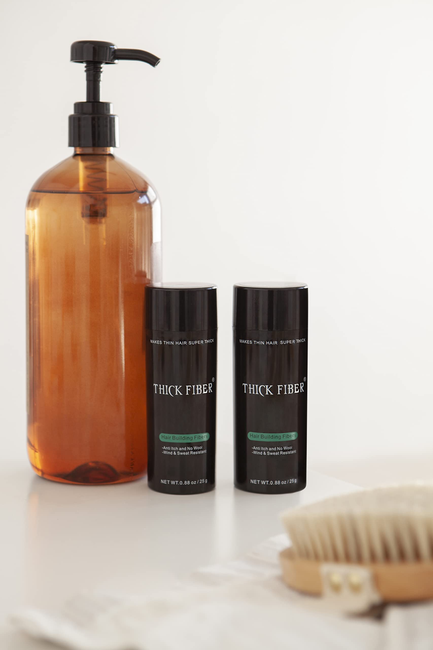 - Quality you can depend on. THICK FIBER hair fibers for thinning hair fibers product was made strictly with natural keratin protein fibers (the same natural compound that binds your hair strands). No harmful chemicals are ever used; it’s a completely natural hair thickener. THICK FIBER is also the reason why our hair-building fibers are Anti itch and highly resistant to sweat and weather conditions.