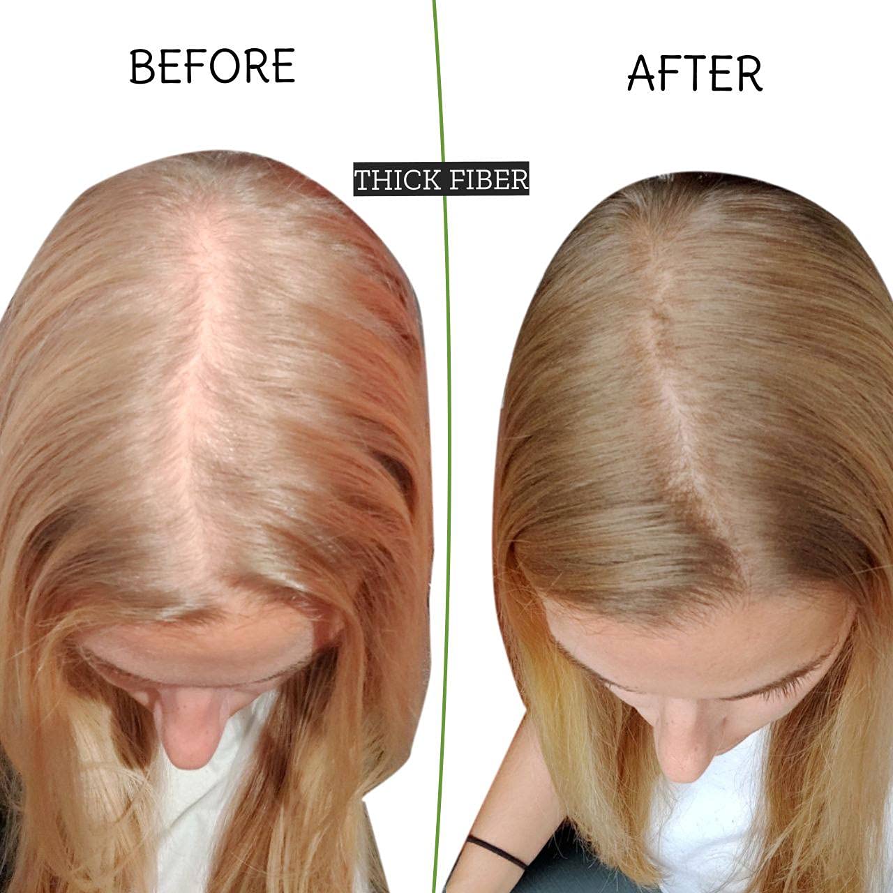 - Stays on for long: THICK FIBER creates natural look. THICK FIBER Hair Fibers resist wind, rain, and moisture for long-lasting results in all conditions. Our hair powder for thinning hair for women and men is resistant to sweat too, allowing you to have your hair full and naturally thick even on the most active days. THICK FIBER will last until the hair is completely washed with shampoo.