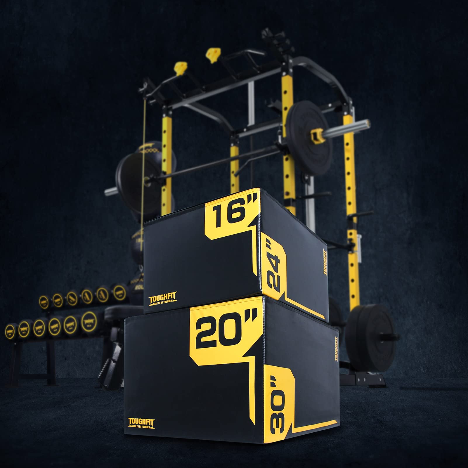 ToughFit Plyo Box - 3 in 1 Foam Plyometric Box - Jump Box for MMA, Crossfit - Adjustment Height Plyometric Jump Box for Home Gym - PVC Cover Platform & High-Density Workout Box (Large - 30"x24"x20")